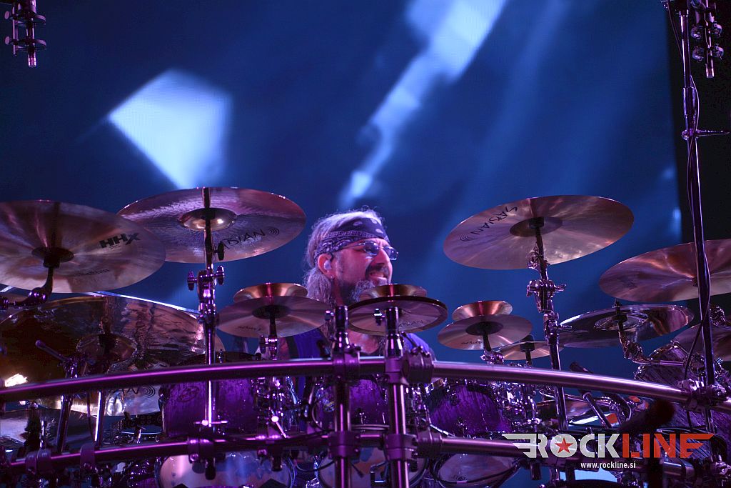 The band provided a great setlist from which only one song from the debut album “When Dream And Day Unite” (1989) was actually missing. Two parts and then a half-hour add-on! No mistake. Where do they manage to remember all this? The stormy and devastating shaking of the notes at every turn that makes your skin crawl, the shooting of the atmosphere with rhythmics that break your legs and knees, the breathless ‘coexistence’ of endless solo escapades into which all four of them entered with a humongous and hardly describable speed, in harmony and with a stunning control of what they were doing together (Portnoy, Rudess, Petrucci and Myung) with Portnoy’s return bringing back to the group the missing and fun moment of glam that he had perfected in his brief association with Twisted Sister during his time away from the Dream Theater (sporting an outfit, a headband around his head, and a performance-style of audience incitement). Until his return the glamour was provided by Rudess’s keyboards, which, in their position on stage in the background once again stole the limelight thanks to their swivelling layout and oddly shaped keyboards (the famous ‘Continuum Fingerboard’ was not missing from the stage). More of this. Mike Portnoy’s moving microphone was handled by the same technician,, as during The Winery Dogs’ concert, heh – isn’t it true, exactly a year ago, when Mike, with Richie Kotzen and Billy Sheehan, rocked Ljubljana’s CUK Kino Šiška on 29/10/2023!