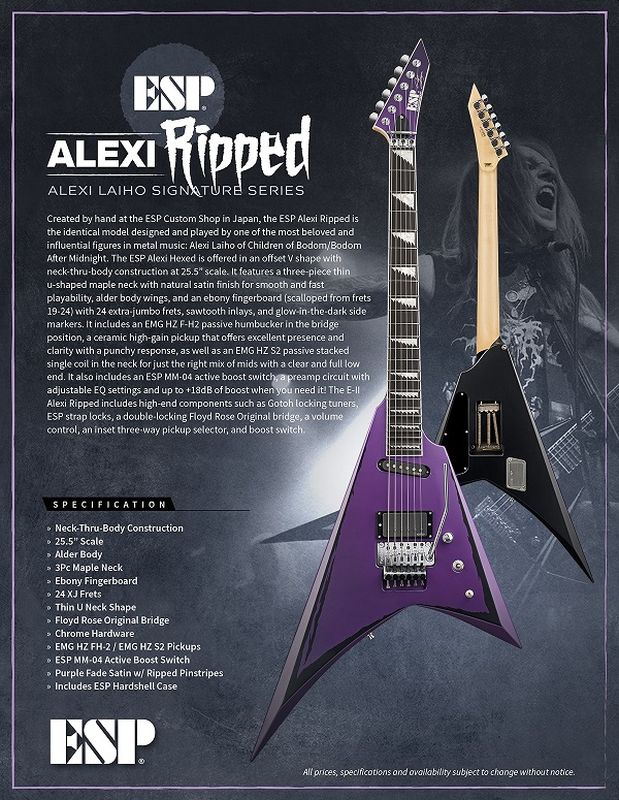 “Ob koncu leta 2020, ki je bilo v vseh ozirih leto polno preizkušenj, smo izvedeli, da je preminil Alexi Laiho. To je bil za mnoge v našem podjetju velik šok, saj smo v obdobju, ko je Alexi zastopal naše kitare s svojim podpisanimi modelom, postali veliki prijatelji tudi na medosebni ravni. Alexi je bil iskriv, prijazen, lojalen in neverjetno nadarjen glasbenik katerega vpliv na moderno podobo metala, nikakor ne more ostati spregledan oziroma prezrt. Alexi se je k ESP priključil leta 2002, leta 2006 pa smo predstavili prvo serijo kitar z njegovim podpisom.”