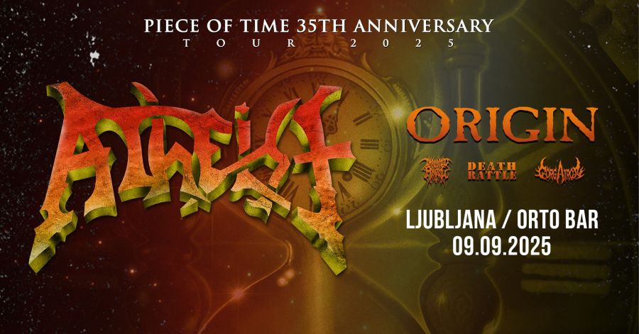 Ljubljano septembra čaka neizprosen večer tehničnega in brutalnega death metala, ki bo zadovoljil še tako zahtevne okuse! Pripravi se na pet izjemnih zasedb, ki bodo stresle Orto Bar – z glavnim poudarkom na dveh velikanih: ATHEIST in ORIGIN!