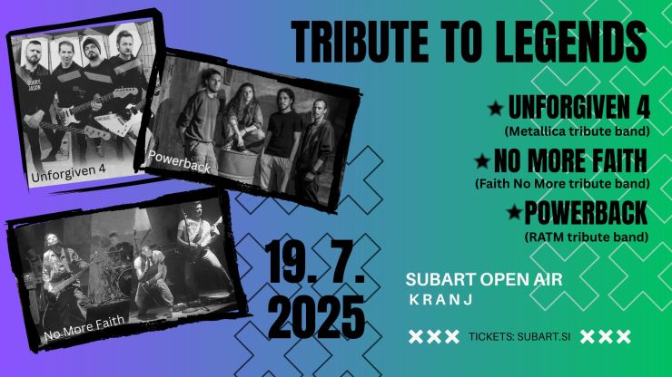 V soboto 19. 7. 2025 bodo v kranjskem Subartu nastopili Unforgiven 4, No More Faith in Powerback. Preigravali bodo klasike skupin Metallica, Faith No More in Rage Against The Machine. Ostane le še sklep: Bodite tam!
