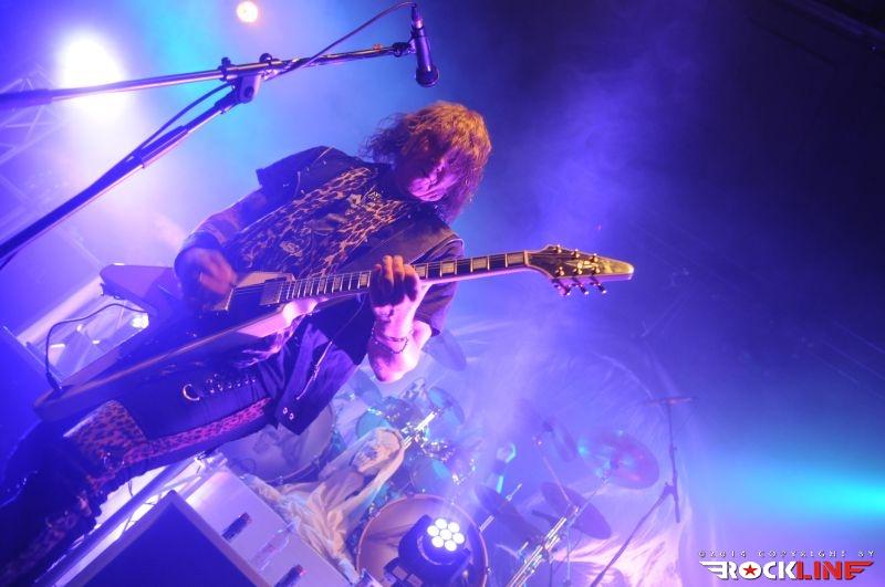 Rhapsody Of Fire so ob deveti uri stopili na oder in atmosfero v dvorani dvignili na znatno višjo raven. Ne glede nato, da se Slovaška publika ni kdo ve kako temperamentno odzivala na teatralno vihravost odlično razpoloženega pevca skupine Fabia Lione-a, je kar nekaj prevretih glav v pročelju parterja zamikastilo in pokazalo celo obvladovanje verzov nekaterih refrenov. Rhapsody Of Fire so po pričakovanju izvedbo materiala podprli s spremljavo matric, ki je vključevala nekatere nasnete klaviature, zborovske vokalne harmonije in seveda celotne orkestracije. Poleg originalih članov pevca Fabia Lione-a i šefa skupine ter klaviaturista Alexa Staropoli-ja, zaokrožujejo zasedbo Rhapsody Of Fire v današnjem času še dolgoletni nemški bobnar Alex Holzwarth, kitarist Roby De Micheli in po novem Holzwarthov brat Oliver. Naj omenimo, da sta brata Holzwarth izjemno izkušena glasbenika. Glasbeni gurmani nemara poznate njuno progresivno rockovsko zasedbo Sieges Even, ki sta jo zaradi premalo zanimanja po sicer odličnem zadnjem studijskem albumu bila primorana razpustiti. Ne glede na to, pa izjemne odlike, ki jih posedujeta ta dva glasbenika ne ostajajo spregledane ali prezrte. Alex je že vrsto let bobnar Rhapdosy Of Fire, Oliver pa koncertni basist nemških power metal velikanov Blind Guardian. Po pričakovanem uvodnem Rising From Tragic Flames z najnovejšega albuma, so Rhapsody of Fire docela presenetili z vključitvijo svoje klasične himne Land Of Immortals s prvenca »Legendary Tales« (1997). Temu je kaj hitro sledilo še eno sladko presenečenje starejšega izvornega datuma, ko je bend prešel v izvedbo še ene klasike imenovane March Of Swordmaster iz albuma »Power Of The Dragon Flame« (2002). Bend je odlično uigran. Ritem linija bratov Holzwarth deluje natančno kot najbolje naoljena kolesca švicarske ure, Alexovo znamenito kotaljenje dvojne bas boben stopalke postaja že kar znamenita zaščitna znamka skupine! Tu je izvrstni kitarist Roby De Micheli, ki je s preklemano hitrostjo in natančnostjo dobesedno osupnil. Vsekakor pa je glavnino pozornosti prevzemal vživeti Fabio Lione, s svojim značilnim operetnim pristopom. Vokal mu je tega večera odlično služil in Rhapsody Of Fire so v celokupnem seštevku priredili odlično enourno popotovanje skozi svojo bogato diskografijo, nato pa sklenili nastop še z eno klasiko studijskega prvenca, potihoma pričakovano Emerald Sword.