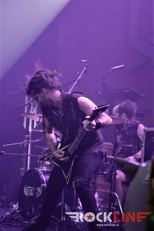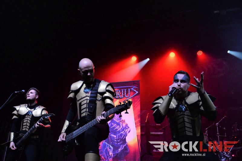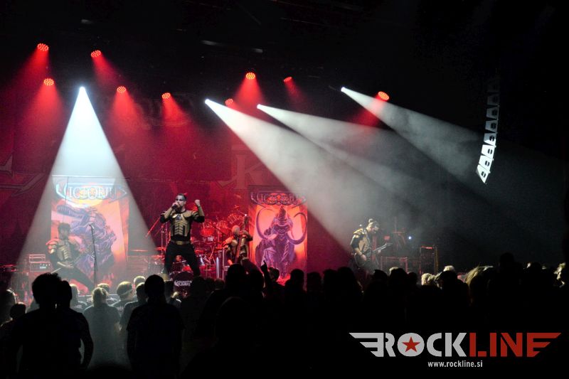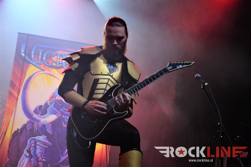 Za uvod so stopili na oder malo preko osme zvečer Nemci Victorius. Predstava prve predskupine pravzaprav opiše fenomen obrazložen v uvodnem odstavku te koncertne recenzije. Skupina, ki je še 28. 1. 2017 sramežljivo, brez sleherne odrske navlake, lišpa in kiča, s pozabljivim nastopom odprla koncert v graškem Explosivu pred Grave Digger, ter kazala znake postopne preobrazbe na istem prizorišču pred Warkings v pozni jeseni 2019, je v Ljubljani stopila na oder že popolnoma preobražena. V tem vmesnem obdobju, so postali nuklearni karate bojevniki, nekakšne superiorne vesoljne ninje, ki bi lahko prijateljevale tudi z Darwinom, sploh kar se tiče odkrivanja domnevno izumrlih linij dinozavrov ter ostalih prazgodovinskih bitij, vse tja do zmajev, ki jih po vesolju očitno mrgoli. Bend se v ‘oklepih’ po novem torej počuti znatno bolj samozavestno. Zelo poštudiran, profesionalno oddelan špil, ki je presenetil ne le po tem, da so fantje vse zelo dobro postorili in da so uigran in čvrst tim, pač pa zlasti po neverjetnem povratnem odzivu, ki je spominjal na čase, ko so Sabaton ‘kradli’ špile HammerFallom (nemara se še kdo spominja tiste HammerFall turneje 2009 in nastopa v Mariboru). Victorius so z vedrim razpoloženjem dodobra nakurili publiko, obenem pa je nastop potrdil, da baza privržencev raste, kajti publika je zelo dobro seznanjena z glasbeno vsebino skupine. Kot povedano, izjemno melodični, epski bombastični refreni, v glasbenem oziru že vse preizkušeno in slišano, se pa po drugi strani vesoljnemu ninja unikumu težko pač upiraš. Zelo uspel nastop. Po videnem gre pri Victorius upravičeno pričakovati, da bo njihova priljubljenost z leti še narasla. Nuklearni kvintet iz Dortmunda je posvetil glavnino pozornosti albumu »Dinosaur Warfare Pt. 2 – The Great Ninja War«, ki je izšel vsega dva dni po Victorius nastopu v Ljubljani.