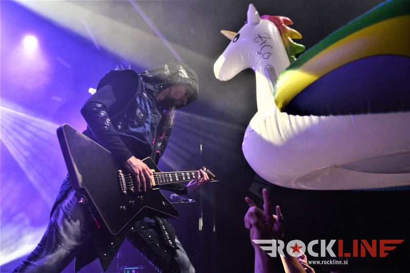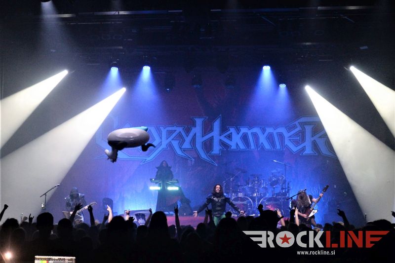 Na Gloryhammer koncertih očitno že lep čas ne more iti prav nič narobe. Takšno zaledje ponuja goreča publika skupini. Zadnji in v letu 2019 izdani album »Legends from Beyond the Galactic Terrorvortex« se je več kot odlično prijel med publiko. To je veljalo tudi za povsem novi single Fly Away, izdan v letošnjem letu. Tako intenzivnega sodelovanja med publiko in bendom ne srečaš vsak dan na power metal koncertih. Od verza do verza. V vrtincu adrenalinske naglice in gorečih čustev! Vse od prve do zadnje vrste prizorišča. Enovito. Gromovito. Ni manjkal niti prihod tistega strupeno zelenega trola, ki ga je McFife znova pobil s kladivom sredi obvezne Gloryhammer. Bilo je kmalu na začetku koncerta. Izvedba skladbe je izvabila buren mosh-pit. Bend je vpeljal na koncertni šov kup ritualov, ki jih je publika hitro vzela za svoje. Složnost sodelovanja v tem je naravnost neverjetna. Nasneti motiv Odiseje 2001 je pomenil uvod v parodično The Hollywood Hootsman, kjer je znova polno blestel ‘kožuhovinasti’ astralni polbog Unsta. Bend je stopnjeval koncert. Ob koncu je dosegla atmosfera vrhunec s težko pričakovano The Unicorn Invasion Of Dundee, bend pa se za njo ni umaknil v zakulisje, pač pa je v nekoliko podaljšanem premoru, ostal na odru ter za veliki finale sklestil še skladbo Wizards!, tako da je ostal občutek o obveznem dodatku nekoliko ‘zabrisan’.
