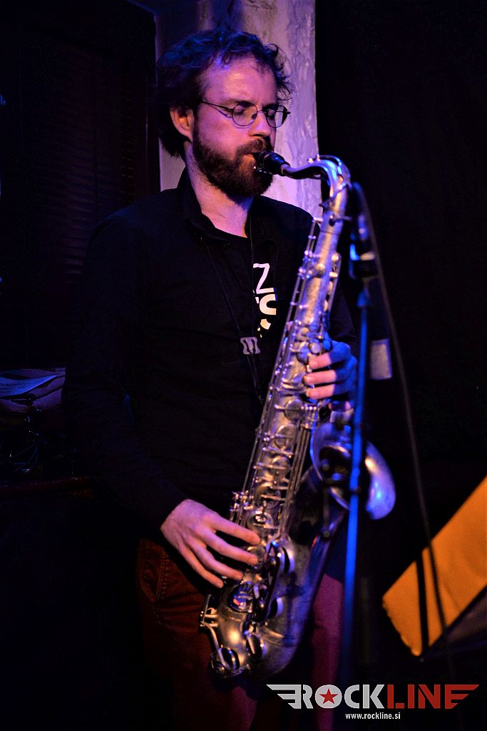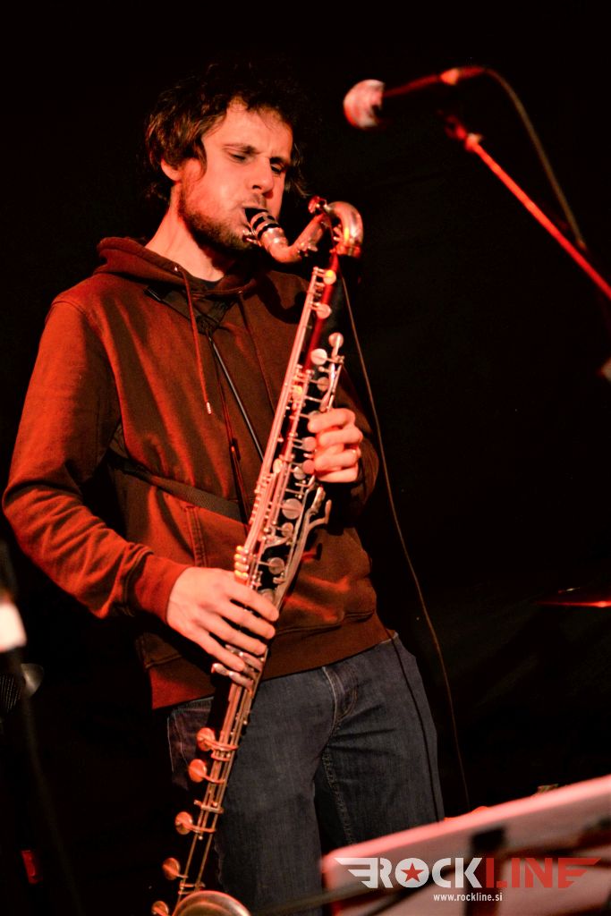 Andi Tausch (kitara), Leonhard Skorupa (saksofon, klarinet, vzorčenje), Daniel Moser (bas klarinet) in Konstantin Kräutler (bobni), združeni v Sketchbook Quartet, so silno prijazna in prikupna glasbena mešanica, ki ji poveljuje nekakšen format lucidno zabavljaškega obešenjaštva kabaretnega jazza. Motivska jedrnatost je otipljiva in jasna in v avstrijski skupini vlada red, kar se tega tiče. Red mora biti, ko govorimo o naših severnih sosedih. Freejazzovskih ekscesov in avantgardno čudaških pobegov ni. Vse je na svojem mestu, še najbolj pa izredna ubranost in usklajenost tega silno šegavega kvarteta. Bend ima zunaj dva albuma »Ottos Mops« in »When Was the Last Time Vol I.« (tretji je v nastajanju, predstavili so tudi že nov material). Razvijajo pečatno vibracijo, ki pritegne in niza vseskozi konkretne motive. Te si fantje podajajo na relaciji pihala – električna kitara, ali pa preprosto preidejo na občo zabavo tako, da si sprva ustvarijo prostor v zavetju ponavljajočega se motiva, v njem pa si izmenjujejo krajše solistične pobege, zlasti na relaciji me saksofonom in kitaro, kar pa nikdar ne nadvlada elementa kompaktne formatiranosti, ki ga kvartet pridno vzdržuje v svojih kompozicijah. Bas klarinet se je še enkrat več izkazal kot silno zanimiv instrument, saj je na eni strani kreirakl silno zabaven in zanimiv harmonični kontrast s saksofonom, na drugi strani pa jedrnato polnil prostor zvočne slike. Vskoki na električni kitari dodajajo skupini domet, ki bi lahko povlekel ne le v sfere jazzrockovske fuzije, pač pa celo v nedrja progresivnega rocka. Navdušujoč nastop. V vsem. Bend, ki je vreden vse pozornosti. Bend, ki je lahko zanimiv tako za manj zahtevne poslušalce, kot tudi za tiste, ki iščete glasbeno neobičajnost