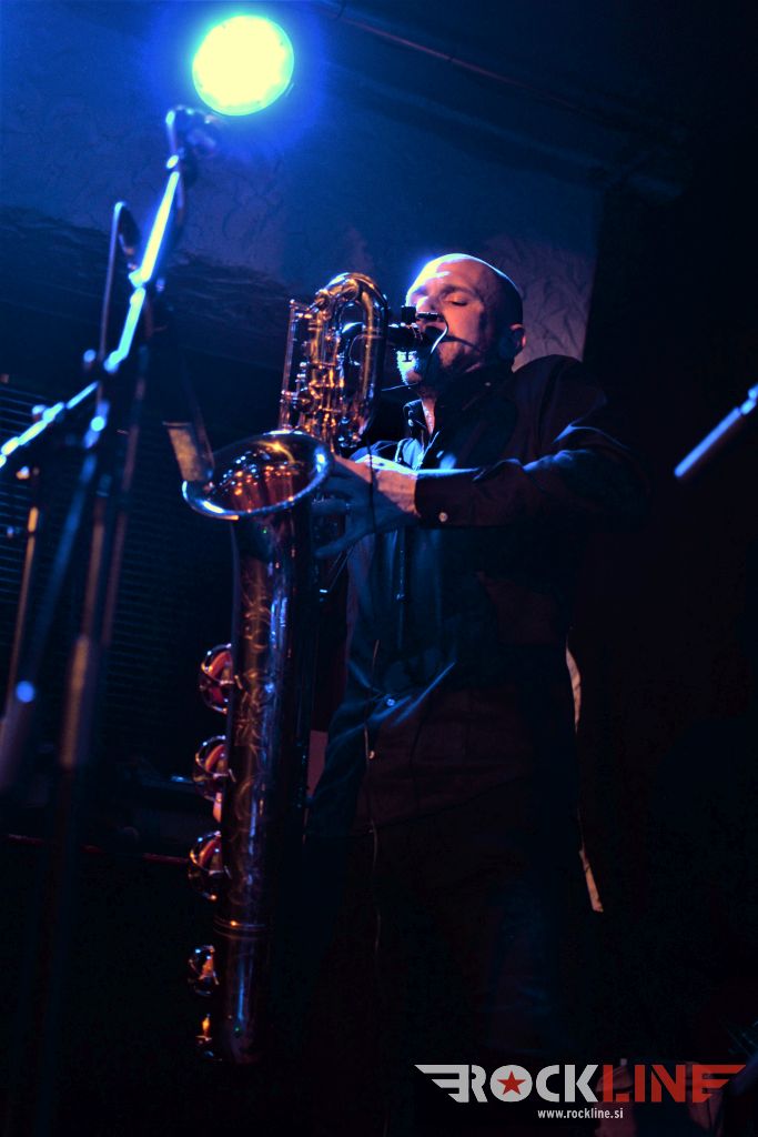 Pa je spregovorila tudi gorila…. Na odru so v nadaljevanju stali torej trije glasbeniki imenovani Gorilla Mask. Dejansko. Ni daleč tale dobra primerjava, da naviješ zvok, ga tudi elektrificiraš, zlasti konkretiziraš kvinte na električnem basu, ali pa preprosto naviješ basovsko nogo do rušilno rožljavih frekvenc, vpneš jazzovski vrtiljak improvizacij na bariton saksofonu in alt saksofonu ter prideš do nekakšnega presečišča Johna Coltranea s Cream, rock’n’roll drvežem ali punkovsko energijo, kjer bi se v njenem varnem zavetju dobro počutili celo ljubitelji Motörhead. Skupino vodi saksofonist Peter Van Huffel, sicer Kanadčan, ki pa živi v Berlinu. Družbo mu delata še električni basist Roland Fidezius ter bobnar Rudi Fischerlehner. Bend je predstavljal svoj zadnji, četrti in v lanskem novembru izdani album »Brain Drain«. Pravzaprav je na koncertu izvedel v živo skoraj celoten album. Z dodatkom vred. Zvrstile so se Caught in a Helicopter Blade, Forgive me, Mother, AVALANCHE!!!, Brain Drain, Drum Song, Barracuda, Rampage in v dodatku Hoster. Bend je razvijal briljantno zvočno goščo, večkrat pri tem uporabljal dodatne efekte, predvsem pa je temeljila predstava na silnem ritmičnem drive-u, ki je vseskozi prilival olja na ogenj in držal publiko čvrsto na preži. Zaznavanje karizmatične trojice je briljantno. Ogromno je prostora za implantacijo improvizacijskih vložkov, kjer dajeta bas in saksofon zdaj prostor bobnom, spet se že naslednjem trenutku prosto razmahne saksofon. Navkljub dejstvu, da mora biti trio vseskozi čvrsto pri stvari, dražijo Gorilla Mask poslušalca vseskozi s šok elementom »pričakuj nepričakovano«. Skupina kolobari premeteno med mirnimi, skorajda subtilnimi pasažami, potem pa nenadno eruptira v zvočno podivjani galop, širnih in sebi lastnih dimenzij v nizanju voluminoznih prostranstev jazzrockovske fuzije. Poveljujočo vlogo nosijo seveda pihala, zlasti je prodorno nizanje motivov, ki jim poveljuje bariton saksofon. Ob tem pa nosi bend tudi jasno izdelano noto svobodoljubnih izzivov prostosučne eksperimentalne kinetike, ki meri v polja freejazovskih ekscesov. Torej fragmentiranja. A se že v naslednjem hipu zavihti na nivo otipljivo formatiranih struktur. Moderna fuzija jazza in rocka, izvedena z izjemno zavzeto čutnostjo in v žaru fenomenalne kemije medsebojnega zaznavanja trojice. Izvedba polna kipečih strasti, genialnih zasukov v atmosferi in nizanju všečnega občutka spontanosti. Bend s samoniklim značajem in bend, ki dostavi na odru odlično energetsko izkušnjo. Nasploh, če vam je všeč surova rokovska energija, pretkano zabeljena z jazzovskim čudaštvom, ki se ne ogne niti blagemu koketiranju z avantgardnostjo. Gorilla Mask so s svojo samoraslo samoniklostjo dostavili odličen koncert v baru Gabrijel. Odlično »ogrevanje« za prihajajoči Jazz Cerkno festival.