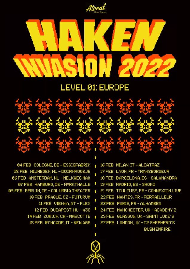 Haken, premierni britanski progresivni rockerji in metalci nove generacije, so obelodanili termine nove evropske turneje, ki bo potekala skozi februar 2022. Spodaj lahko preverite celoten seznam “Haken Invasion” turneje, na kateri se Haken Sloveniji najbliže ustavijo 15. 2. 2022, ko nastopijo v italijanskem kraju Roncade pri Trevisu in tamkajšnjem klubu New Age. Vstopnice krenejo v prodajo v petek, 2.7. 2021.