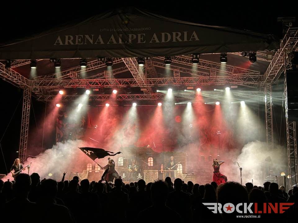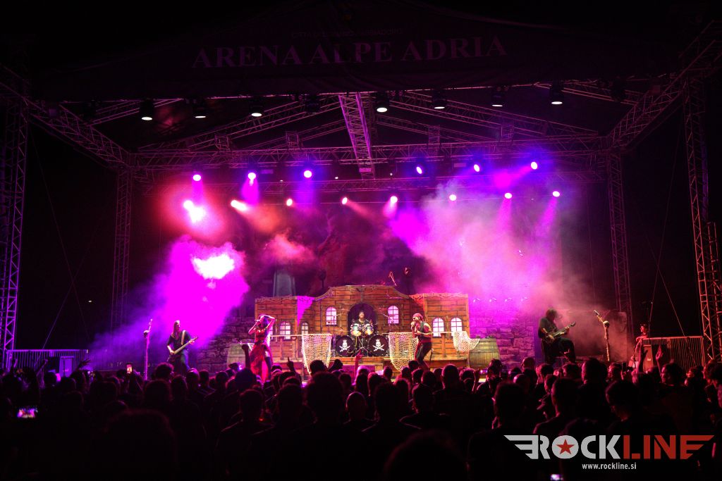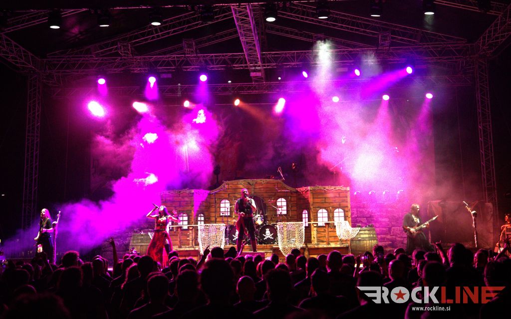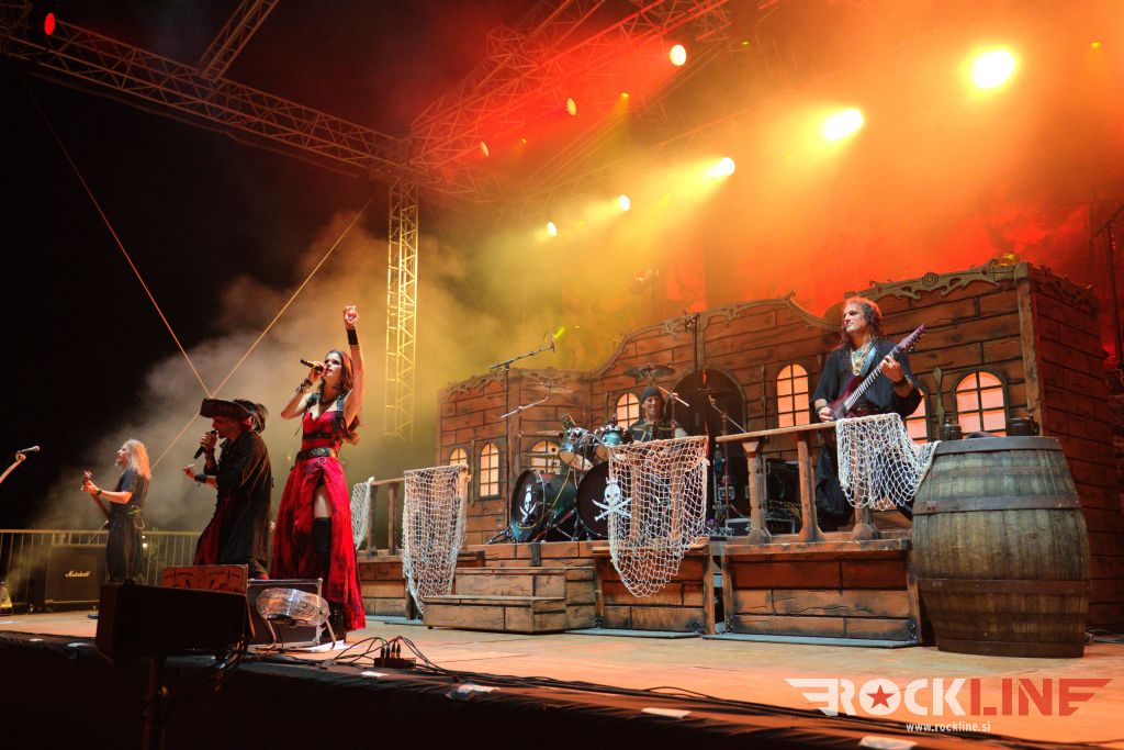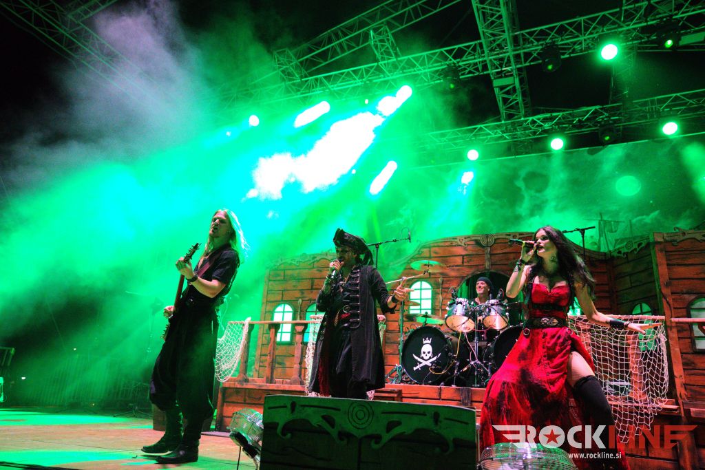Visions Of Atlantis so krenili na oder ob pol devetih zvečer. Bend katerega korenine delovanja segajo globoko v devetdeseta, je z marljivo neomajnim garaštvom in vero v to kar počne, naposled uspel. To dokazuje neomajen kreativni domet skupine, ki je od leta 2018 do danes nanizala zadnje štiri studijske albume, predvsem pa je z albumoma “Pirates” in “Pirates II – Armada” postavila vse stvari na svoje mesto! Prelevila se je v simfonično power piratsko metalski kvintet z moškim in ženskim vokalom, izdelano odrsko opravo in scenskimi kulisami, kar je za generacijo novopečenih metalcev celo bolj pomembno od fantazijskega sveta in piratskih pripovedk (zadnjih studijskih izdelkov). Clementine Delauney – francoska vokalistka in italijanski pevec Michele Guaitoli se odlično ujemata. Bend je spretno in ceremonialno izkoriščal velik oder, ki je deloval kot paluba piratske ladje in seval zelo dobro razpoloženje. Publiko je dodatno podžigal Guaitoli, doma iz Stare Gorice, ki je publiko nekajkrat ogovoril v italijanskem jeziku. Bend je prejel daljšo minutažo in v eni uri so izvedli enajst skladb, pri čemer so se Visions Of Atlantis skorajda izključno osredotočali na material zadnjih dveh albumov. Od uvodne Master The Hurricane, fantomske Monsters do vrhunca v finalu preko Melancholy Angel in Armada, je bend držal publiko pri sebi z odlično odrsko izvedbo, vsem odlikam nastopa pa so botrovale tudi odlične zvočne karakteristike. Zanimivo je, da so se Visions Of Atlantis tokrat zelo dolgo poslavljali z odra. Tako dolgo, da bi lahko vmes odigrali še kak komad.