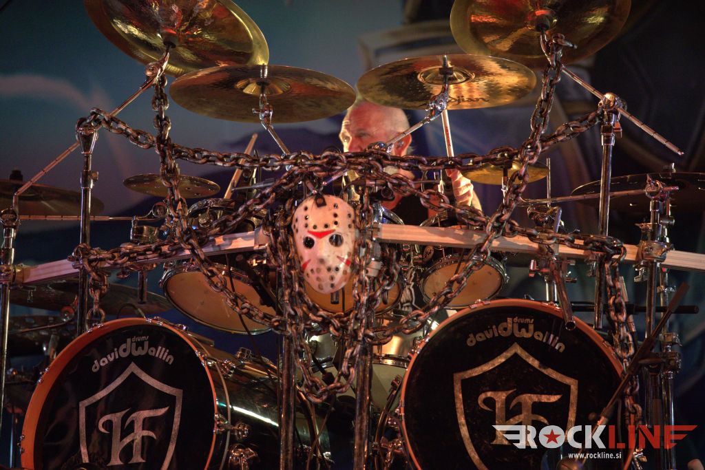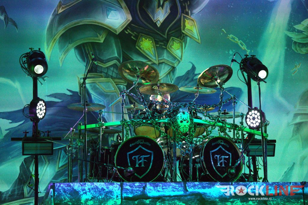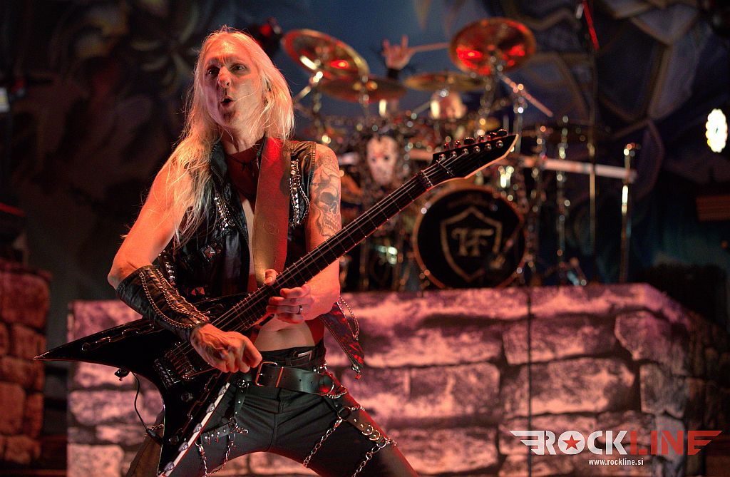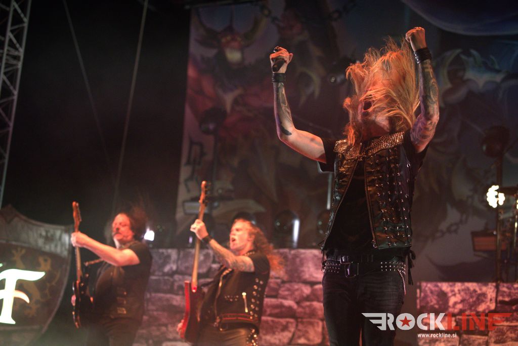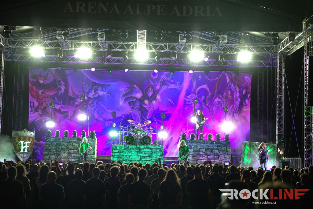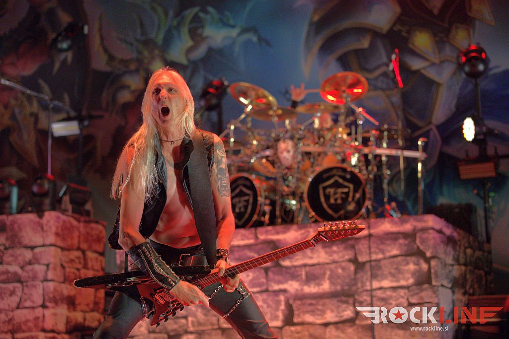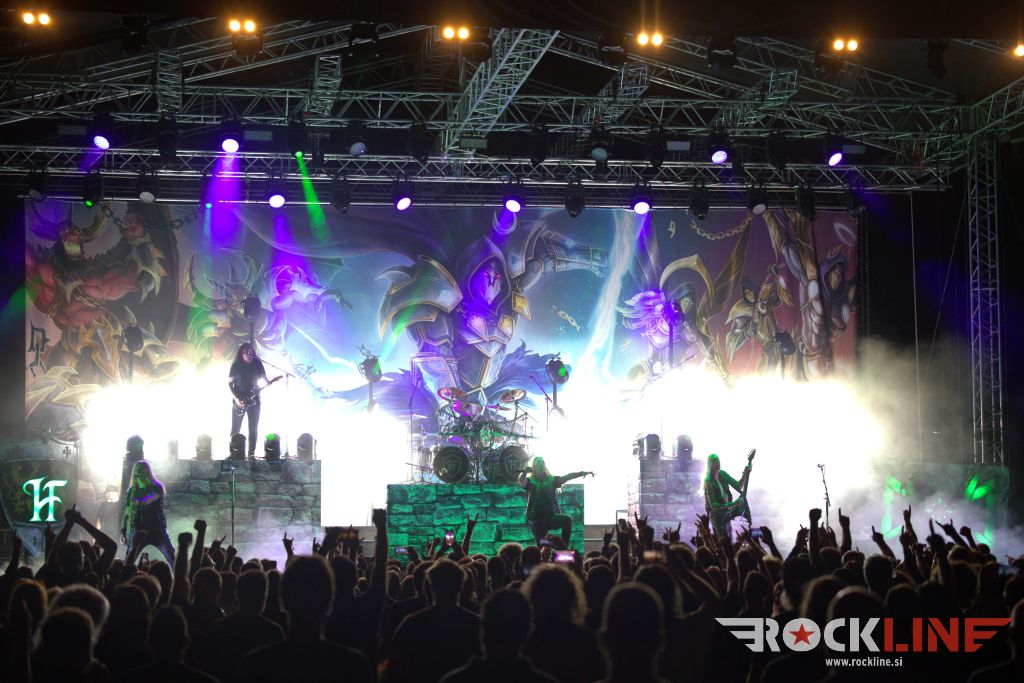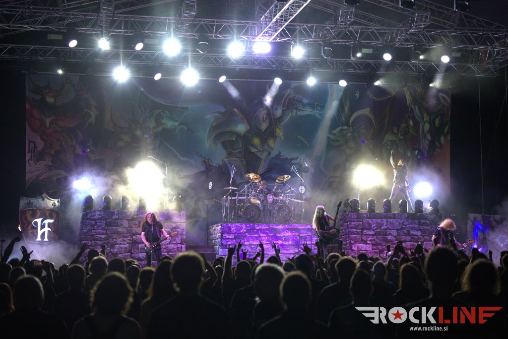 HammerFall so v uri in pol dostavili nekakšen karierni presek, čeprav bi si ljubitelj starega kova, kot je avtor teh vrstic želel da bi dostavili še kakšno starejšo klasiko, po možnosti kak prezrt sladkorček s prvih štirih do petih albumov, več! Kakorkoli. Prostrani oder, kulisa z graščino v kateri prebiva znameniti Hektor – maskota, ki spremlja skupino vse od začetka njene kariere. Tu so. Joachim Cans na vokalu, pa kitarist Oscar Dronjak, basist Fredrik Larsson, pa odlični kitarist Pontus Norgren, ki si je svoje čase služil kruh kot kitarski tehnik Yngwie Malmsteena in nenazadnje, prava bobnarska pošast David Wallin, ki se ga je komaj kaj videlo za njegovo bobnarsko utrdbo.