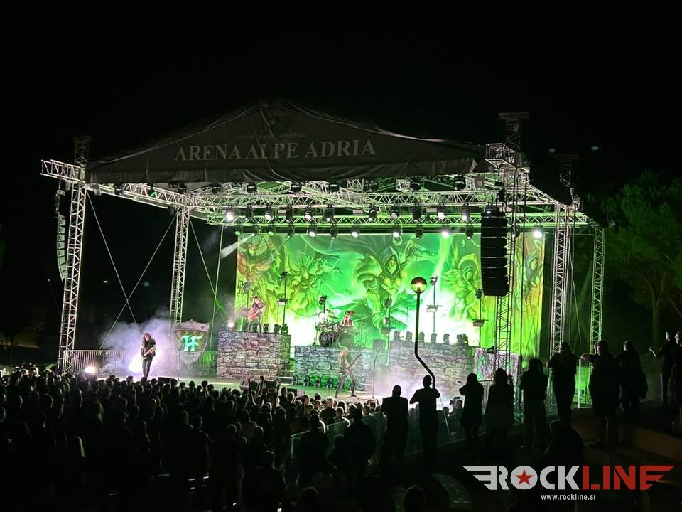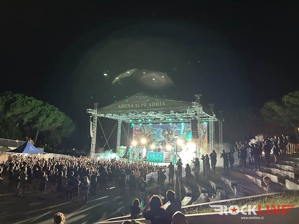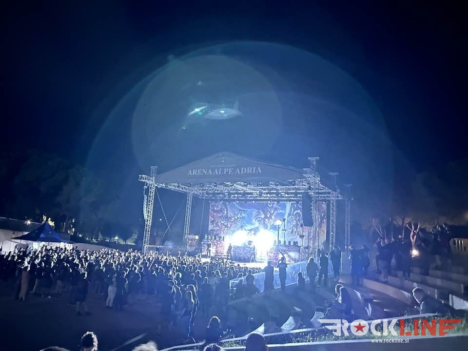 Prizorišče Arena Alpe Adria je silno prisrčno. Recimo da sprejme tja do 2.500 glav (s tribunami vred). Vanj se vračamo vedno znova. In to z velikim veseljem. 31.julija smo tu obiskali Extreme, 19. avgusta lani pa Amon Amarth. No, obisk pa je tokrat znova ‘šepal’. Ljudi je bilo celo manj kot na Extreme. Tribune povsem prazne, v parterju pa recimo največ kakih 600 glav. A razbeljenih!