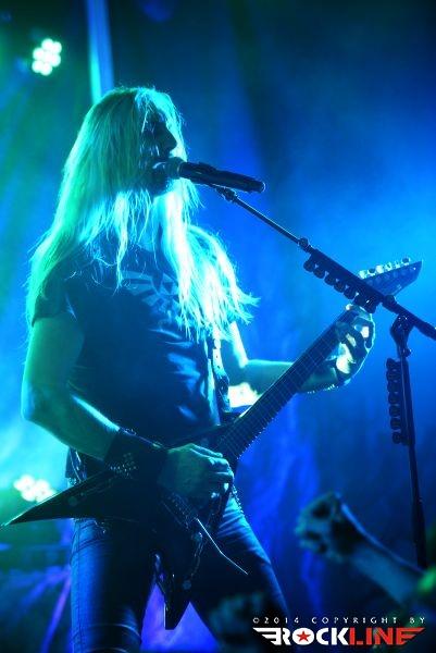 Kvintet je postregel z odličnim zvokom in znova očaral s svojim strogim profesionalizmom. Cans se ej odlično držal na vokalu, bend sicer ni mogel razviti tiste maksimalne odrske aktivnosti, ki smo jo sicer vajeni od HammerFall, zavoljo manjšega odra. Pa vseeno. Rama ob rami v tercetnih harmonijah Oscarja, Stefana in Pontusa, naštudirani skeči Cansa v premorih med skladbami s katerimi je publiko čvrsto držal pri sebi in na sploh velik občutek sproščenosti, doziran s teatralno predstavo, kjer je Oscar izmenjal set zanimivo oblikovanih kitar, me d katerimi je zlasti izstopala tista z obliko Hectorjevega kladiva in še kaj, so zadovoljevali publiko, ki je presenetljivo podoživeto sodelovala v petju refrenov skladb. Bend je dostavil izjemno gesto tudi tako, da je Elmgrenu ponudil solo točko na električni kitari, kjer so mu v nadaljevanju instrumentalne točke, ki je nanizala venček vodilnih fraz skladb Hero’s Return, Where Dragon Lies Bleeding, Riders on the Storm prišli na oder delat družbo Pontus (na bas kitari!!!), Oscar in David.