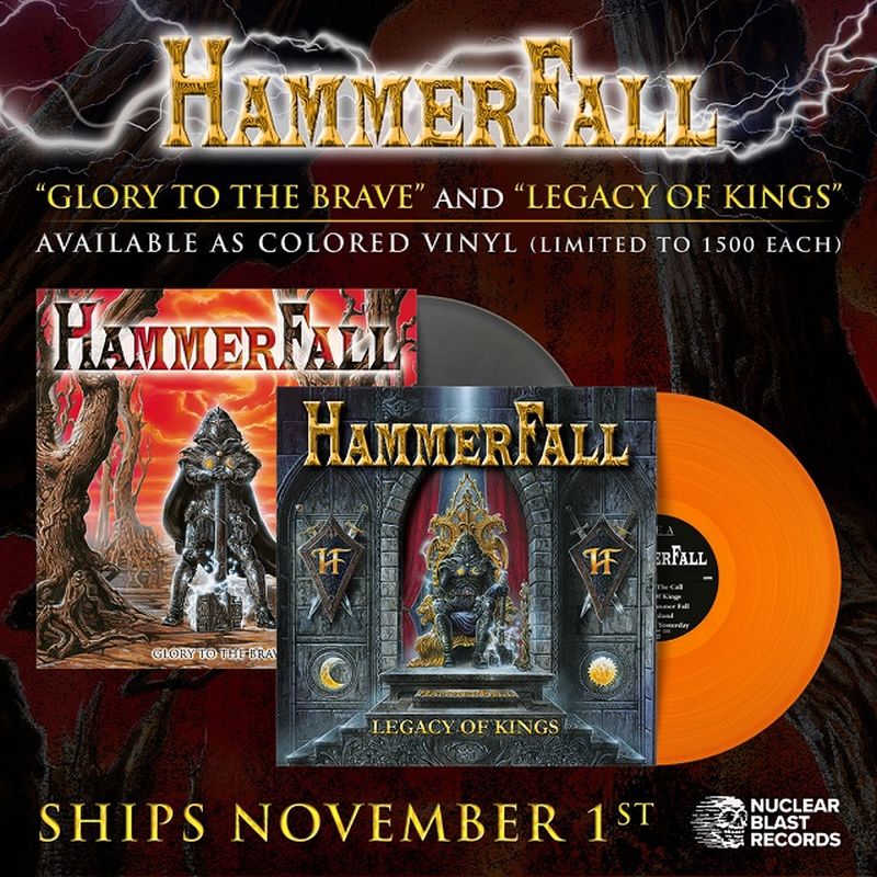 HammerFall, dolgoživi in neupogljivi švedski powermetalci iz Gothenburga, ki so 9. 8. 2024 in pri nemški založbi Nuclear Blast Records, izdali novi in skupno 13. studijski album “Avenge the Fallen” (RockLine recenzija), napovedujejo barvni vinilni ponatis prvih dveh studijskih albumov kariere “Glory To The Brave” (1997) in “Legacy Of Kings” (1998).