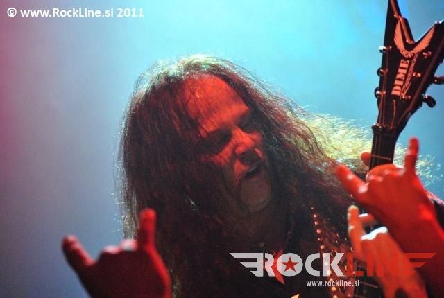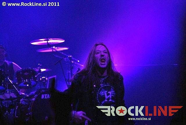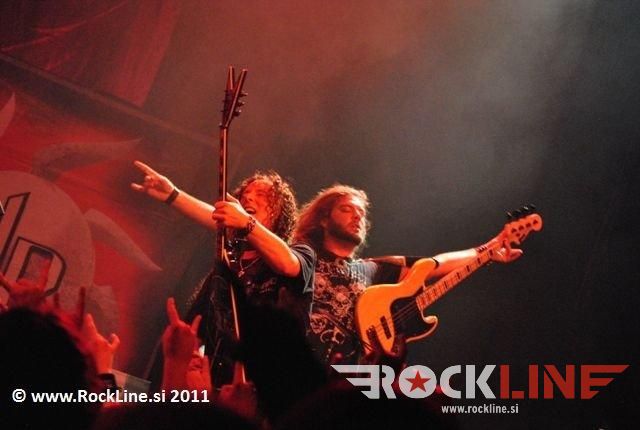 Vicious Rumors, ki so imeli na razpolago 40 minut koncertnega repertoarja, so brez spoštovanja hipoma nasršili zobe in usekali naravnost. S klasiko Digital Dictator. Ne glede na to, da je bil zvok kitar razmazan, to nikakor ni motilo, saj deluje zasedba na odru naravnost nepremagljivo. Ubili so nas v Orto baru maja letos in ubili so nas tudi tokrat v Kinu Šiška. Zasedbi je nadvse godila polna zasedenost dvorane. Geoff Thorpe se ni pozabil v enem od nagovorov zahvaliti zasedbi HammerFall, da jih je povabila na to turnejo (povzemam del te Geoffove stavčne povedi: “… a tour of our lifetime…”). Z vokalistom Brianom Allenom je Thorpe zadel glavico na žebljico, saj se je z “Razorback Killers” tako najbolj kredibilno približal magiji Carl Albert ere. Allen, ki pooseblja vokalista na heliju in združuje v sebi najbolj strupena višavja vreščavo melodičnih “Halfordesk”, ki neusmiljeno parajo ušesa in cerebralni korteks, je osupnil z močjo, ki ni klecnila niti za hip v teh kratkih, a sladkih 40. minutah. Katarzično zaznavanje eksplozivnega Larryja Howea na bobnih, neupogljivega poglavarja skupine Geoffa Thorpea, hitro udomačenega povratnika Rasmussena, nadgrajeno z odličnim Allenovim performansom je ponudilo pričakovani scenarij. Vicious Rumors so namreč boljši glasbeniki in skupina, kot HammerFall. Ustvarili so najpristnejši ambient v zibelki rojstva kjer je bil spočet ameriški metal. Še pred vznikom Bay Area thrash metal ere! Nabrito oster, tehnično zahteven, agresiven in zabeljen s pravo mero melodičnosti! Odigran popolno. Kovanje klasike na klasiko, scenarij pisan na kožo pravovernim ljubiteljem skupine z le eno novo skladbo, sicer nadodlično Let The Garden Burn, kjer je tudi Geoff Thorpe v rušilnem duetu z Allenom naposled korenito pretegnil svoje glasilke.