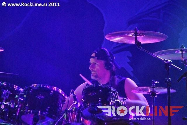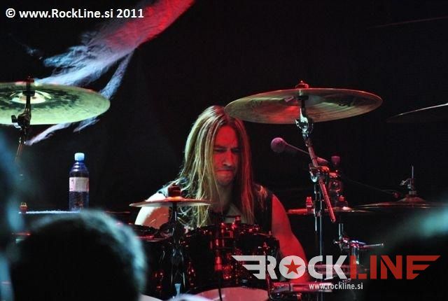 Bend pa polno “naoljen”. S Pontusom Norgrenom, ki je svoje dni med drugim služboval, kot Malmsteenov kitarski tehnik, so HammerFall v zadnjem času zadeli glavico na žebljico in naveza s prvo HammerFall ikono – slokim Oscarjem Dronjakom, deluje na odru naravnost fenomenalno. K temu prišteješ še odlično dnevno formo Joachima Cansa, ki je v Ljubljani ponudil resnično kakovostni vokalni performans in odščebetal ves repertoar na izjemnem nivoju (kot rojeni forntanm, ki je publiko vseskozi čvrsto držal ob sebi in kot sam vokalni glasbeni talent) ter na drugi strani klenost ritmične naveze Larsson/Johansson, pa je zmaga Templarjev zagotovljena. Anders Johansson, z bobnarsko utrdbo na podestu dvignjen nad vse, se je v lažjih točkah sicer kratkočasil na vse mogoče načine. Od tod tudi kakšna zamuda pri prehodih, vendar za uho povsem neboleče. Na eni izmed točk si je Anders popestril delo tudi tako, da je vstavil v usta bobnarsko palčko in s pestjo proste levice tolkel po levi ride čineli.