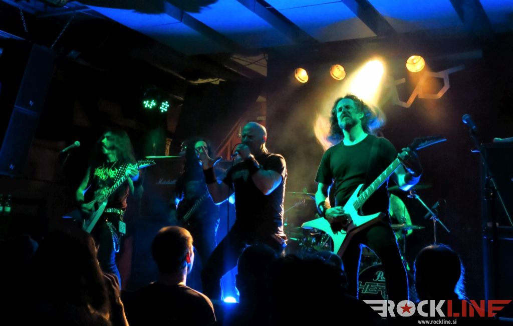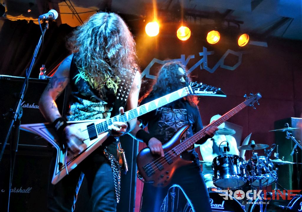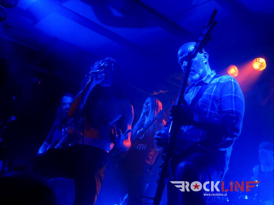 Kot prvi so torej na oder stopili kultni newyorški Toxik, ki so se v zgodovino v poznih osemdesetih zapisali z dvojčkom albumov World Circus/Think This. Na njiju so kot eni prvih v thrash vkomponirali še bolj kompleksne in tehnično zahtevne pristope, zaradi česar jih mnogi štejejo za ene prvih, če ne celo prve, predstavnike tehničnega thrash metala. Toxik so od začetka svojega delovanja že nekajkrat prenehali z delovanjem in se znova vrnili med žive, tokrat pa so sploh prvič stopili tudi na slovenske odre. Jasno pod vodstvom še edinega originalnega člana, kitarsta Josha Christiana, ki je ob sebi zbral mlado in zagnano ekipo s katero je končno le posnel dolga let napovedovani tretji studijski album Dis Morta, ki izide čez mesec in pol. Toxik prav (kvantitativno) bogate diskografske zapuščine nimajo, zato smo bili deležni izdatne doze materiala z dveh že omenjenih kultnih plošč in rušilce kot so Heart Attack, Greed, Think This ter World Circus so fantje nizali drugega za drugim in brez usmiljenja. Vse pozornosti pa ni ukradel le Christian, ki je kljub svojim letom (julija jih bo dopolnil 56) zlit s svojo kitaro in še vedno zveni jezno in brutalno dobro, ustavile pa ga niso niti tehnične težave med enim od komadov (ki mu jih je pomagal odpraviti kar prijazni obiskovalec iz prvih vrst). Ne, vso pozornost je nase usmeril mladi vokalist Ron Iglesias, ki je kričal kot žival, zadel vse še tako visoke falzete in tudi sicer na odru deloval tako energično, da bi lahko nastopil tudi v reklami za Red Bull. Iglesiasa je bil oder namreč poln ves čas, njegovo stalno pozivanje k moshu pa je proti koncu le obrodilo sadove (Iglesias je bil sicer tudi eden glavnih krivcev za moshanje med Heathen). Toxik so predstavili tudi naslovno skladbo prihajajočega albuma, ki sicer razen zapomnljivega refrena (še) ni pustila večjega vtisa, je pa brez dvoma velik vtis pustil bend z odlično predstavo ter hvaležnim in ponižnim odnosom in Dis Morta je brez dvoma na seznamu težje pričakovanih letošnjih plošč.