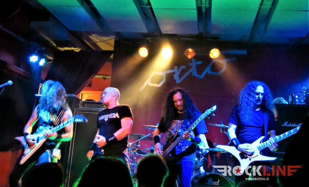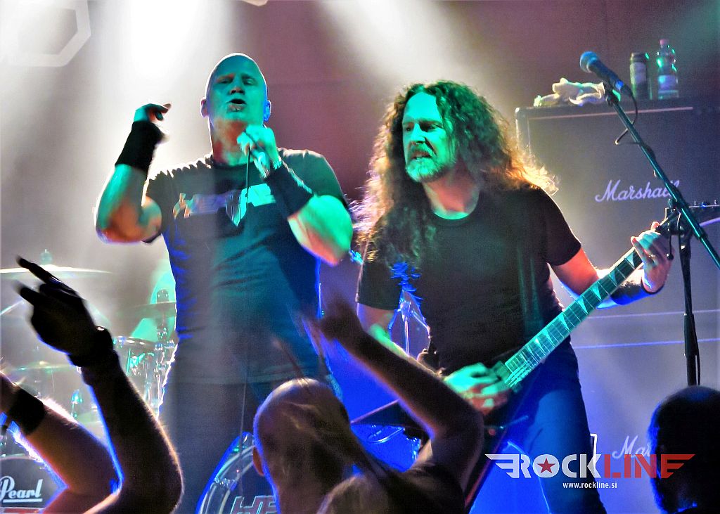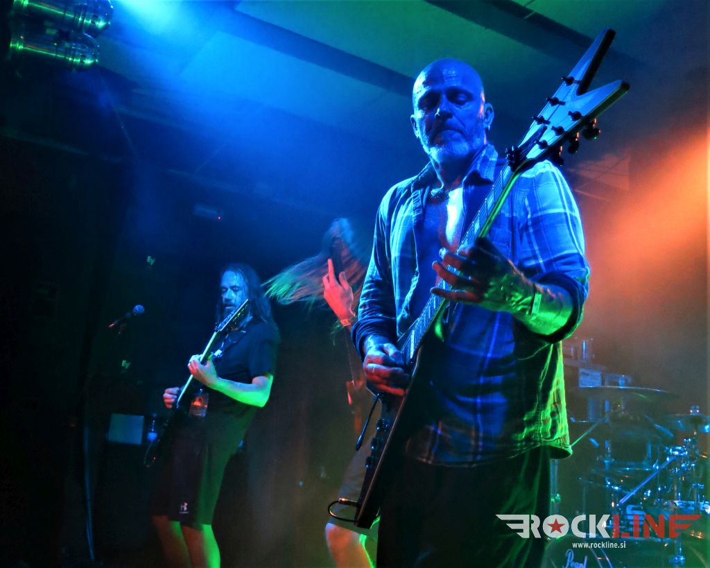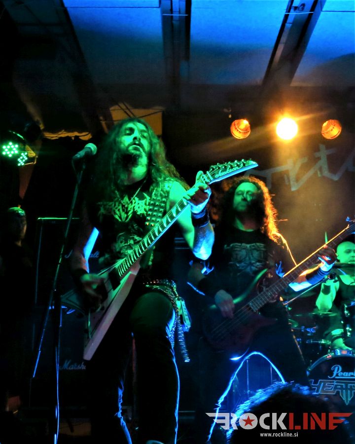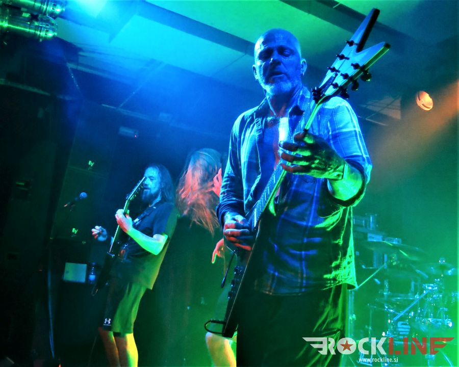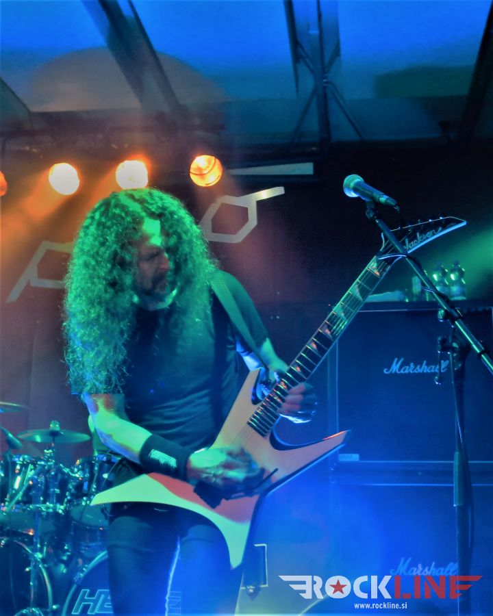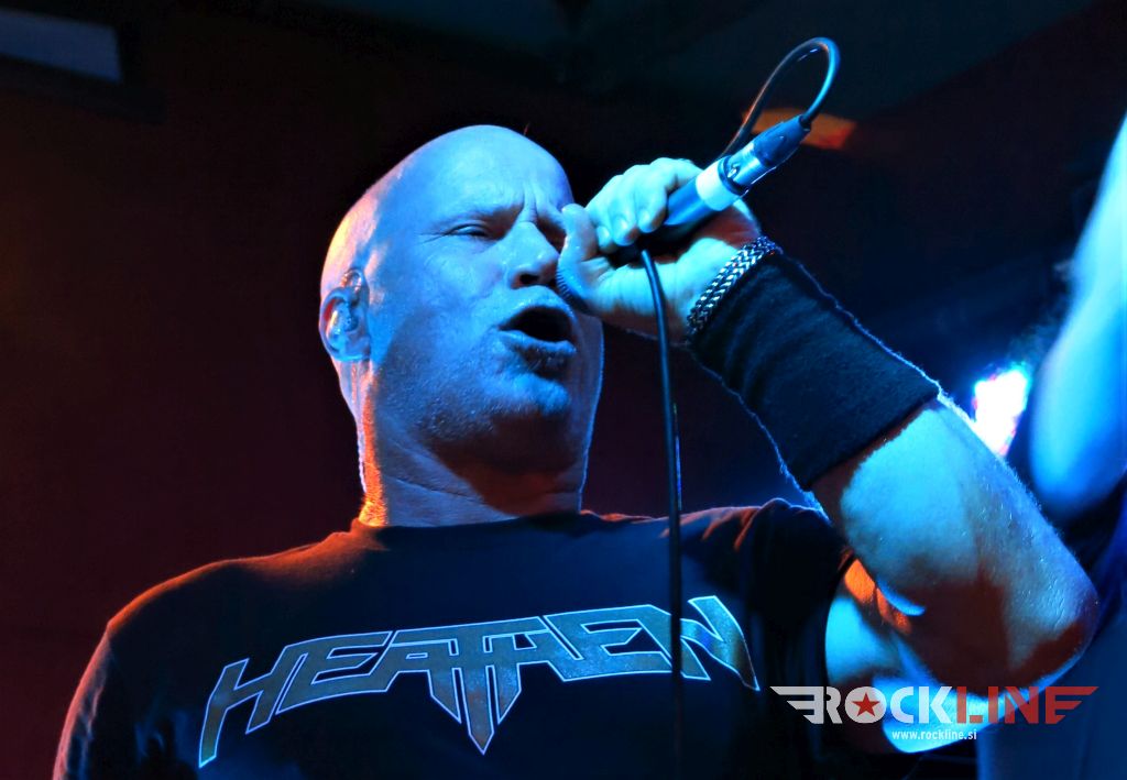 Tudi Heathen niso bend, ki bi se lahko pohvalil z ravno velikim številom albumov, saj so jih od leta 1984 izdali le štiri, za zadnjega in še aktualnega Empire of the Blind iz leta 2020 pa so potrebovali kar debelo desetletje, njegov predhodnik The Evolution of Chaos je namreč izšel davnega 2010. Leto kasneje so na Thrashfestu Heathen tudi zadnjič nastopili pri nas, z njihovim sploh prvim nastopom pri nas, t.j. leta 2010 v Mariboru, pa so se zapisali v zgodovino (skoraj tako lepo kot Forbidden, prav tako v štajerski prestolnici), zato so pričakovanja pred njihovimi nastopi vedno velika. No, tokrat je bilo prvo razočaranje že to, da s skupino na evropski turneji ni edinega še preostalega ustanovnega člana, ukrajinskega gorostasa in kitarista Leeja Altusa. V njegove velike čevlje je stopil mladi in neznani kanadski kitarist Kyle Edissi (njegov matični bend je Invicta), čez čigar predstavo ni moč reči ničesar, saj je svoje delo opravil odlično. Vseeno pa je gledati Heathen brez Altusa nekako tako, kot je bilo gledati Exodus brez Garyja Holta. Kakorkoli, Heathen so Ljubljano pozdravili z noviteto The Blight in dal kljub začetnemu slabšemu zvoku vedeti, da so v izredno dobri formi, kar sta dala kot prva vedeti že poznana kitarist Kragen Lum ter seveda vokalist Dave White, poleg ultra nalezljivih kitarskih potez s svojim čistim vokalom glavni krivec za melodično podobo Heathen, s katero so bili že s prvencem Breaking the Silence zaznamovani kot ena bolj unikatnih thrash metal zasedb. Visoko letečih melodij je bilo tudi tokrat celo prgišče, za rahlo grenak priokus pa je poskrbel le izbor komadov. Ta je namreč skoraj v celoti baziral na novi plošči, s čimer sicer ne bi bilo nič narobe, saj so The Blight, Empire of the Blind ter Sun In My Hand s svojimi močnimi refreni tipični predstavniki Heathen rušilnosti na eni, ter kitarske preciznosti in vrhunskega občutka za melodijo na drugi strani. Žal pa so bile zaradi močnega poudarka na Empire of the Blind z izjemo nepozabnih Goblin’s Blade, Death By Hanging ter zaključnega Hypnotized, v katerega je popeljal zlovešči glas Jima Jonesa, skorajda v celoti spregledane klasike s prvih dveh plošč, ki sta Heathen vpisali v zgodovino thrasha. Lahko bi fantje razgreti ljubljanski publiki namenili vsaj še Opiate of the Masses, ki ga na ter turneji sicer tudi igrajo. No, so pa k sreči v Ortu fantastično odzveneli rušilci z vrhunske The Evolution of Chaos, predvsem epski Arrows of Agony in Dying Season, posebno pohvalo pa si zasluži bobnar Jim DiMaria, ki je po tehničnem viharju s Toxik brezhibno odbobnal še drugi koncert v večeru! Pod črto sicer ne najboljši Heathen koncert viden do sedaj, brez dvoma pa kljub temu eden boljših, letos videnih koncertov.
