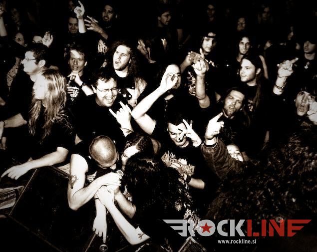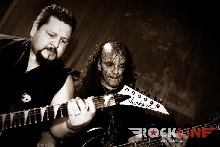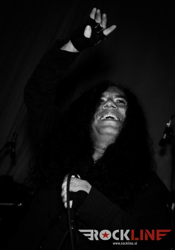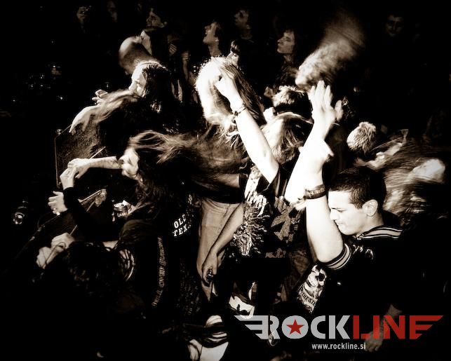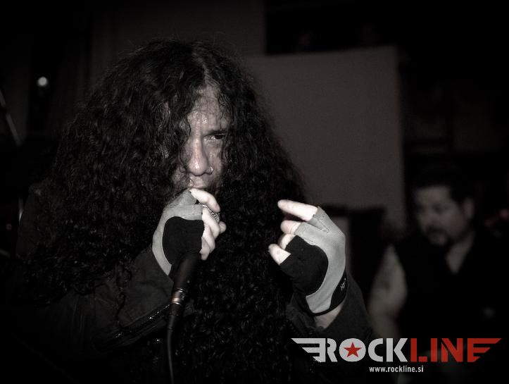 Nato pa smo končno le dočakali konkretno dozo texas fuckin’ metala z legendarnimi Helstar. Texačani imajo v žepu pred kratkim izdano ploščo The King of Hell, ki je bila izredno dobro sprejeta tako med kritiki kot med občinstvom. Seveda so Helstar s ponosom na tej turneji predstavljali svež izdelek in zato primerno začeli svoj set z naslovno skladbo albuma, The King of Hell. Publiki se je snelo že ko so na oder eden za drugim prikorakali Larry Barragnan (kitara), Rob Trevino (kitara), Jerry Abarca (bas) in Russell DeLeon (bobni) in začeli z inštrumentalnim uvodom klicati hudiča. Ta se ni pustil čakati dolgo in po stopnicah se je na oder spustil še veliki vokalist “the king of hell” osebno, James Rivera, z masko demona pekla poveznjeno čez obraz, in norija se je začela. “Bow down to the King of Hell!” Helstar so zveneli kot prerojeni, kot da bi se čas za njih ustavil po izidu albuma Remnants of War (katarega 20. obletnico praznuje trenutne postava Helstar skupaj z bobnarjem DeLeonom, ki je z bendom zaigral na Multiples of Black). Kitarska dvojica Barragnan/Trevino je kot za šalo uprizarjala hitrostna tekmovanja po vratovih kitar, ubijalski riffi in nadzvočne solaže so padale kot za stavo, ritem sekcija pa kot orkanski veter rušila vse pred seboj, basist Abarca pa je kljub manjšim tehničnim težavam po odru skakal kot dvajsetletni smrkavec ne pa kot gospod v štiridesetih. Vsem skupaj pa je poveljeval nepozabni James Rivera, ki je že dobrega četrt stoletja eden najbolj prepoznavnih obrazov metala. Rivera je vokal poleg Helstar posodil še malemu morju bendov, od Destiny’s End, Seven Witches, Distant Thunder pa do Flotsam and Jetsam, verjetno pa je tudi najbolj zaslužen za ponovno popolno združitev Helstar. Aja, da ne pozabim, Rivera je vokalno prav tako morilski kot na začetku svoje kariere. Naj gre za supervisoko Pain Will Be Thy Name, občasne growle, ali pa melodično srednjo epsko lego, Rivera dokazuje, da je vokalno eden najbolj ohranjenih frontmanov ta hip. Da ne govorim o tem, da je njegova karizma nedosegljiva in dokazuje, da je oder njegov dom. Helstar so v Bazenu zares odprli peklenska vrata, saj se je publiki mešalo in moshalo neprestano, Helstar pa niso mogli prehvaliti našega občinstva in tudi v svoj “tour report” zapisali, da je bil kranjski koncert daleč pred vsemu koncerti turneje. Teksaški velikani heavy/power/speed metala so nas v dobri uri in tričetrt popeljali skozi svojo diskografijo, največjo pozornost seveda namenili aktualnemu albumu, a niso pozabili na goreče, večne klasike kot so Burning Star, himne Run With the Pack, Suicidal Nightmare, Nosferatu je zobe našpičil in zagrizel v vratove z epskima Harker’s Tale in Baptized in Blood, veliko presenečenje pa je bil magični Winds of War s spregledane plošče A Distant Thunder. Žal so popolnoma pozabili na sicer najslabšo ploščo skupine, a še vedno odlično izdajo Multiples of Black, a dokazali, da so ene izmed redkih skupin, ki da ogromno na svoje fene. In se na oder vrnili, in vrnili, in vrnili in čisto za konec odigrali še spektakularni Angel of Death, posebej za kranjski koncert, saj omenjene klasike niso igrali že lep čas.
