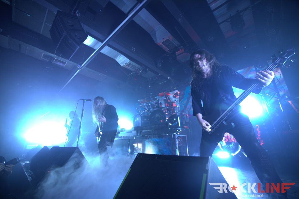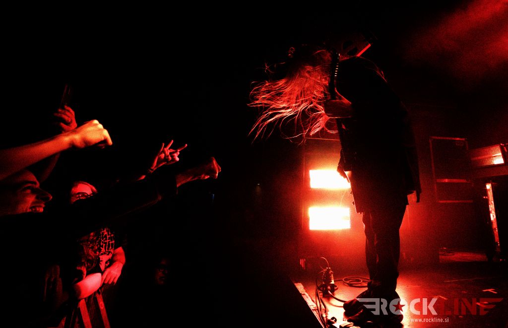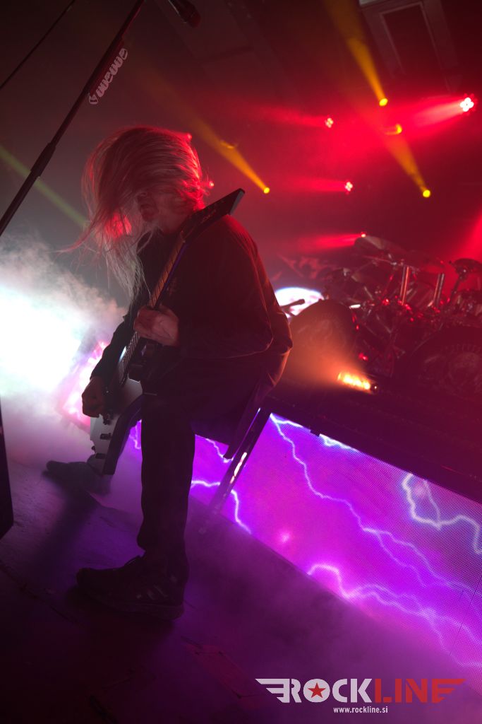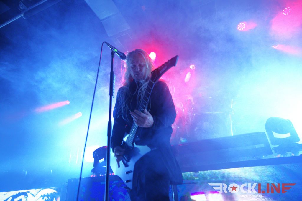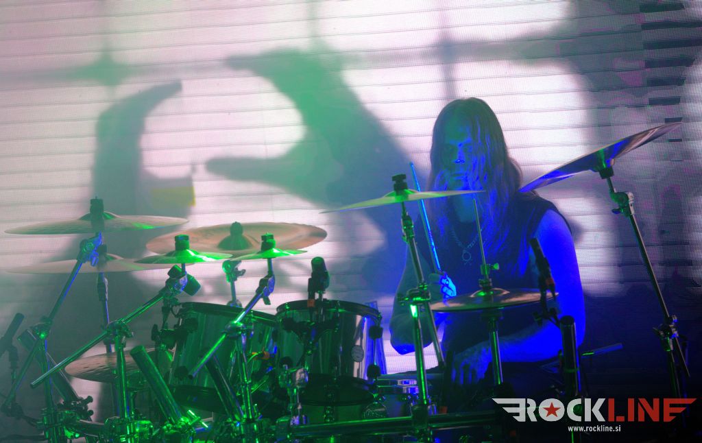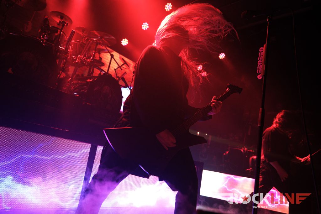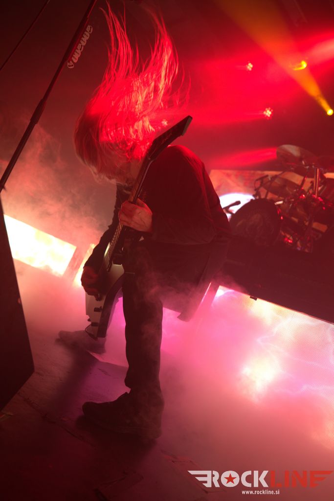 Hypocrisy so zato krenili na oder že deset minut pred deveto zvečer. V prvih vrstah je vrelo. Cele legije mladenk in mladcev, stesano, recimo kar ostro opravljenih. Na preži! Ko je kvartet zavzel položaje je bila povratna reakcija s strani publike naravnost huronska. Tägtgren je že takoj po prvem komadu They Will Arrive gromko vzdignil roke kvišku in pozdravil občinstvo: “Ljubljanaaa!!!”, s čimer je iztržil na prizorišču še več adrenalinske naglice. Kulise ozadja vezane na izdane videospote, vsebino izdanih albumov, ogromno megle vse povsod, veliko rdeče svetlobe v ozadju, ki se je največkrat križala z zeleno in belo. Na obrazih nič. Lom in šus! Torpediranje dvojne bas boben bule v kombinaciji z rezgetavo devastacijo fraziranja in robato bolščavih bas linij, je zajel Cvetličarno, kot bi prizorišče naglo goltali ognjeni zublji. Tägtgren se z growlom dobro drži. Tudi proti koncu predstave se je dobro držal. Nemara je na trenutke bil malo pretiho nastavljen v miksu zvočne slike, pa tudi nekatere solaže so mestoma potegnile v zvoku ‘kratko’.