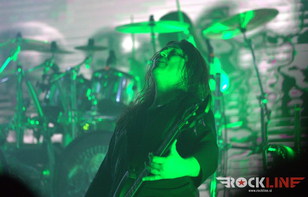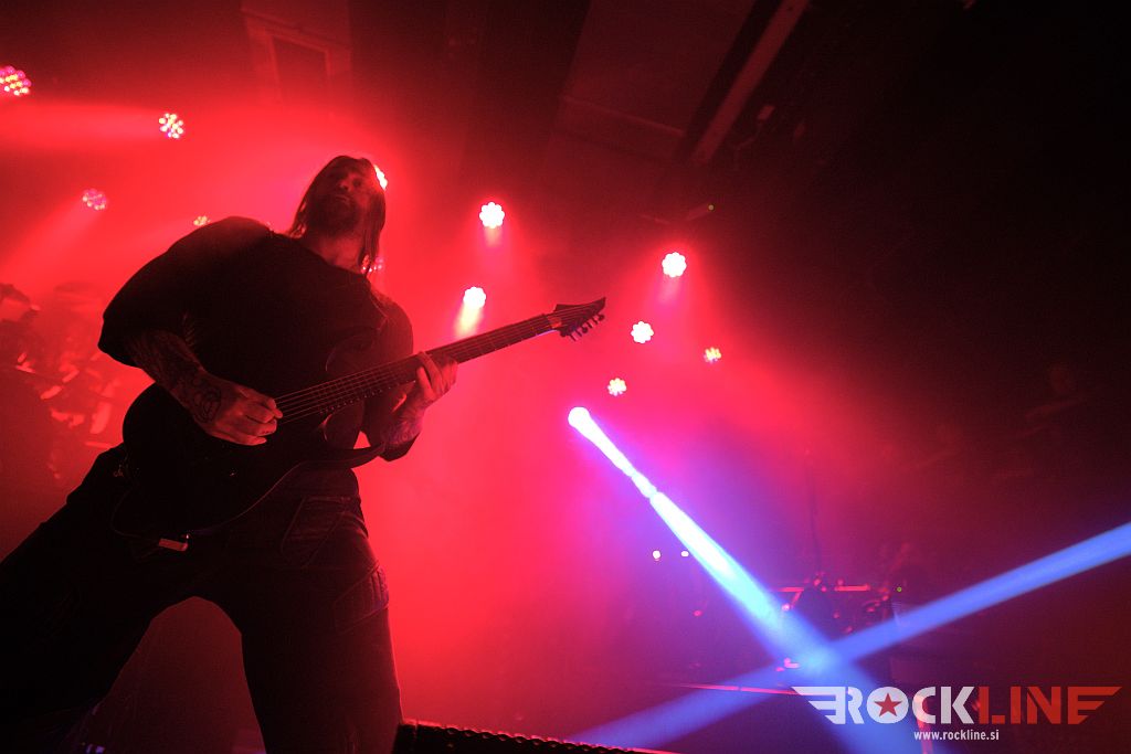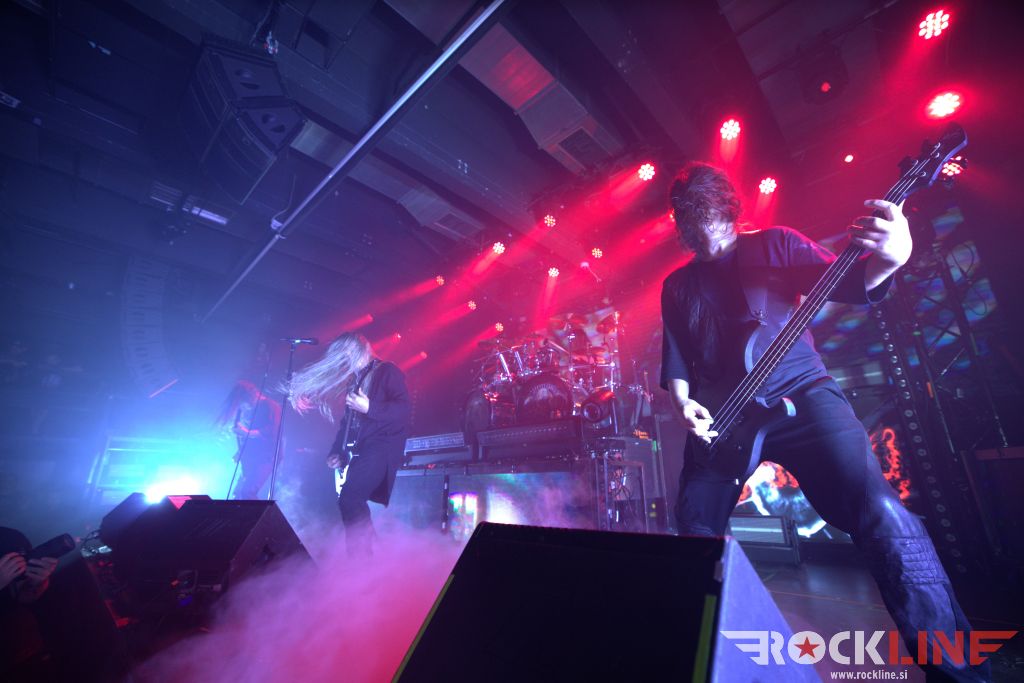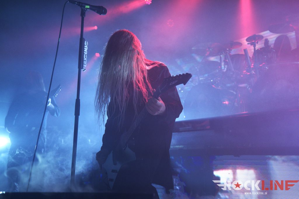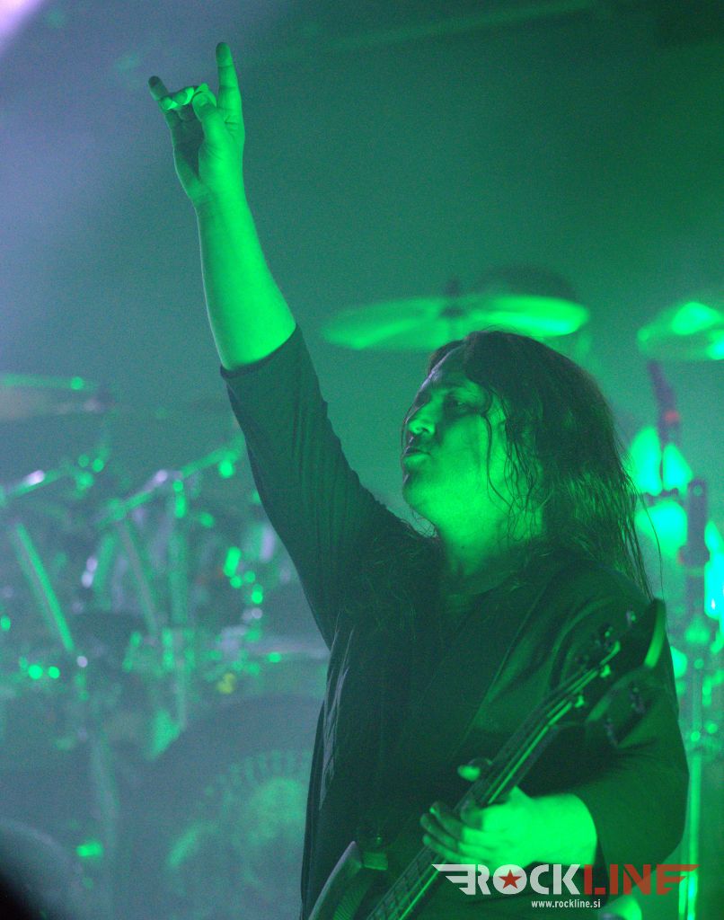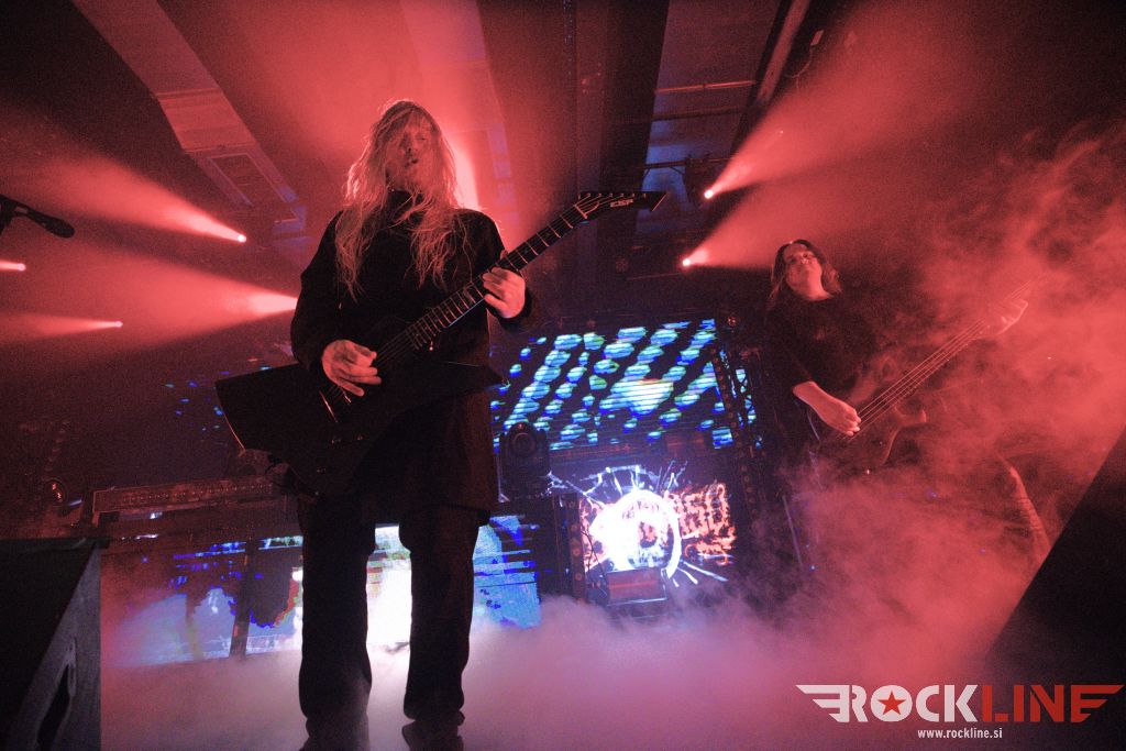 Hypocrisy so zato krenili na oder že deset minut pred deveto zvečer. V prvih vrstah je vrelo. Cele legije mladenk in mladcev, stesano, recimo kar ostro opravljenih. Na preži! Ko je kvartet zavzel položaje je bila povratna reakcija s strani publike naravnost huronska. Tägtgren je že takoj po prvem komadu They Will Arrive gromko vzdignil roke kvišku in pozdravil občinstvo: “Ljubljanaaa!!!”, s čimer je iztržil na prizorišču še več adrenalinske naglice. Kulise ozadja vezane na izdane videospote, vsebino izdanih albumov, ogromno megle vse povsod, veliko rdeče svetlobe v ozadju, ki se je največkrat križala z zeleno in belo. Na obrazih nič. Lom in šus! Torpediranje dvojne bas boben bule v kombinaciji z rezgetavo devastacijo fraziranja in robato bolščavih bas linij, je zajel Cvetličarno, kot bi prizorišče naglo goltali ognjeni zublji. Tägtgren se z growlom dobro drži. Tudi proti koncu predstave se je dobro držal. Nemara je na trenutke bil malo pretiho nastavljen v miksu zvočne slike, pa tudi nekatere solaže so mestoma potegnile v zvoku ‘kratko’.