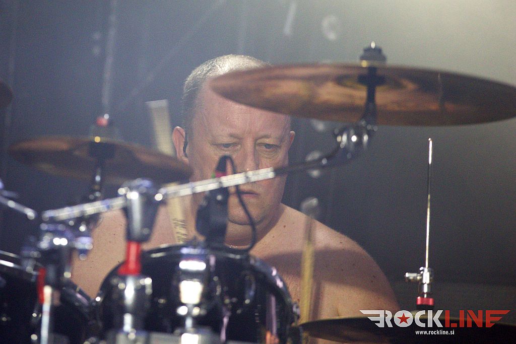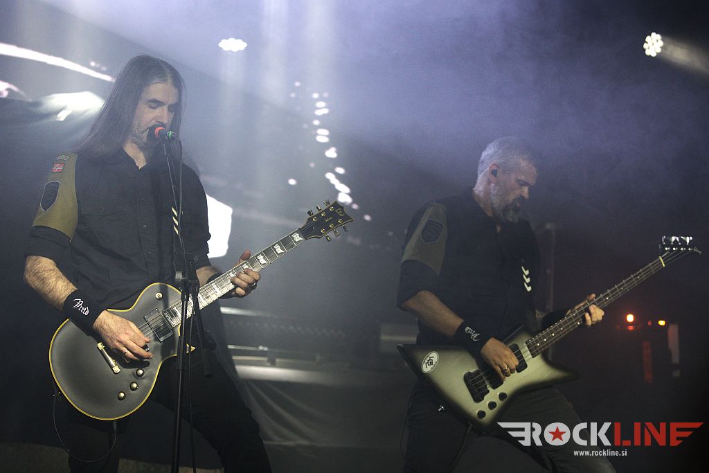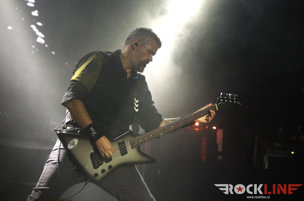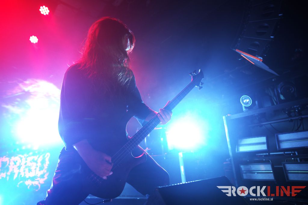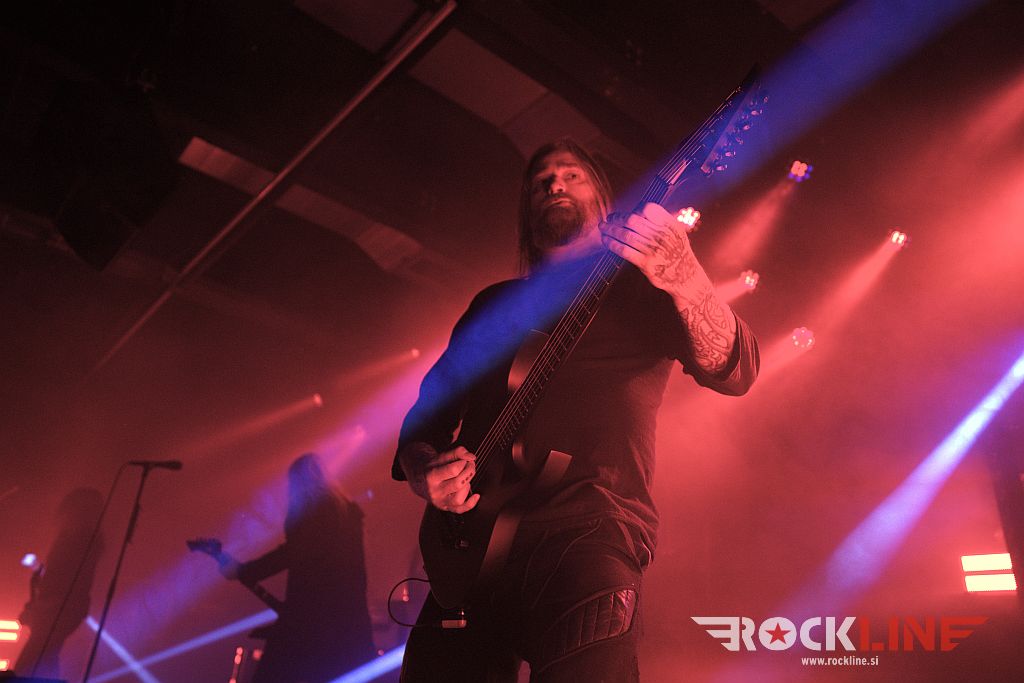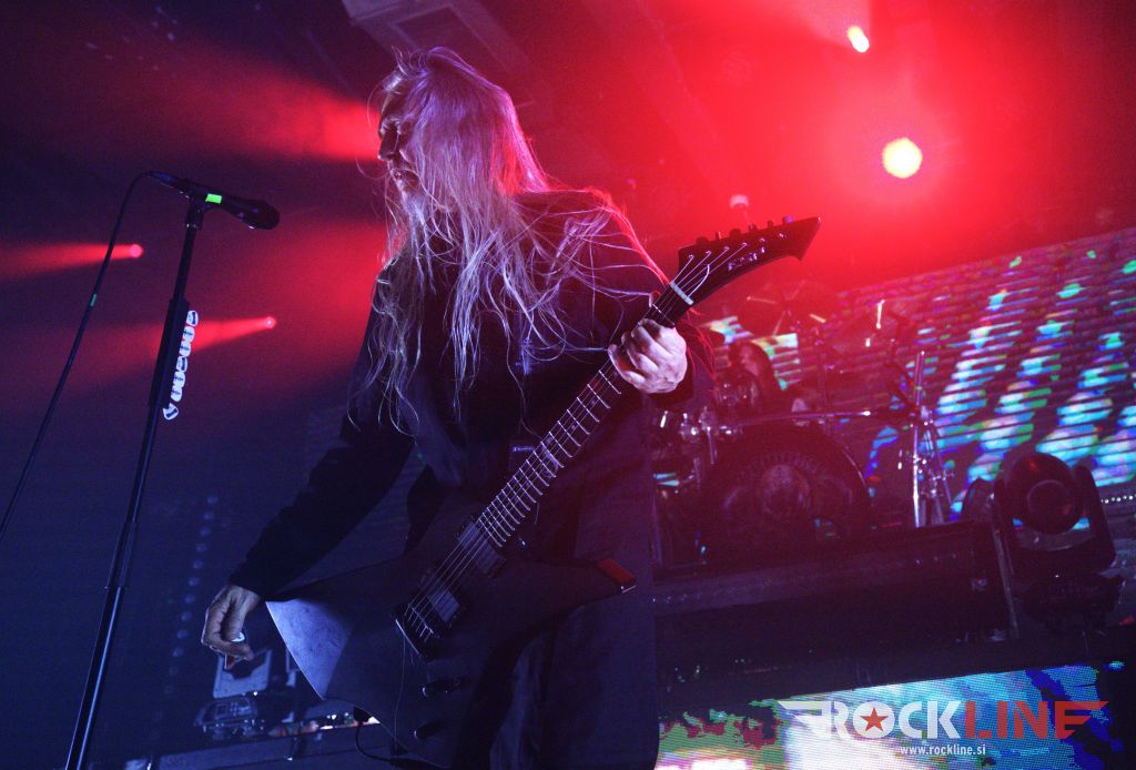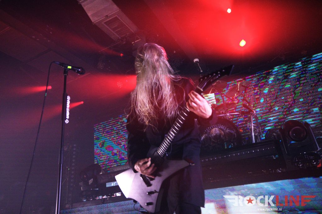 Hypocrisy so zato krenili na oder že deset minut pred deveto zvečer. V prvih vrstah je vrelo. Cele legije mladenk in mladcev, stesano, recimo kar ostro opravljenih. Na preži! Ko je kvartet zavzel položaje je bila povratna reakcija s strani publike naravnost huronska. Tägtgren je že takoj po prvem komadu They Will Arrive gromko vzdignil roke kvišku in pozdravil občinstvo: “Ljubljanaaa!!!”, s čimer je iztržil na prizorišču še več adrenalinske naglice. Kulise ozadja vezane na izdane videospote, vsebino izdanih albumov, ogromno megle vse povsod, veliko rdeče svetlobe v ozadju, ki se je največkrat križala z zeleno in belo. Na obrazih nič. Lom in šus! Torpediranje dvojne bas boben bule v kombinaciji z rezgetavo devastacijo fraziranja in robato bolščavih bas linij, je zajel Cvetličarno, kot bi prizorišče naglo goltali ognjeni zublji. Tägtgren se z growlom dobro drži. Tudi proti koncu predstave se je dobro držal. Nemara je na trenutke bil malo pretiho nastavljen v miksu zvočne slike, pa tudi nekatere solaže so mestoma potegnile v zvoku ‘kratko’.
