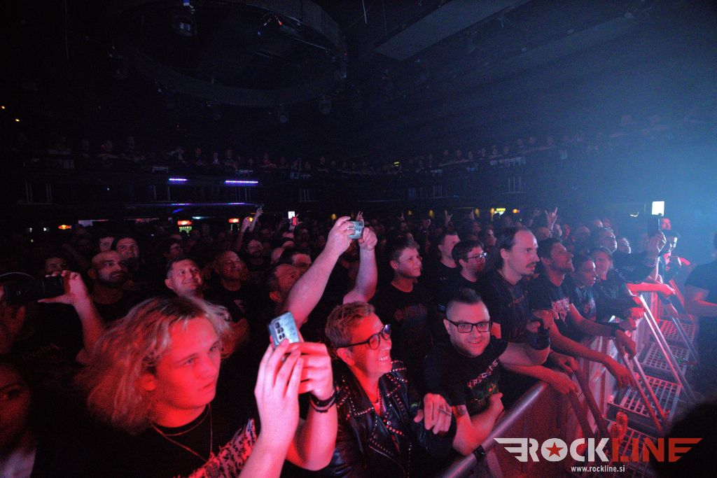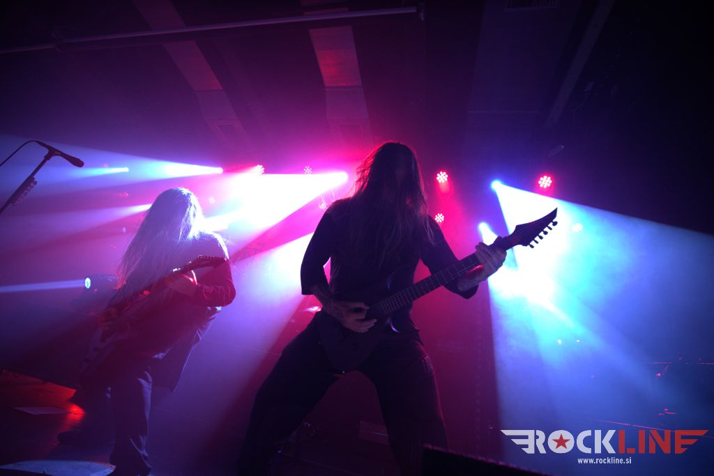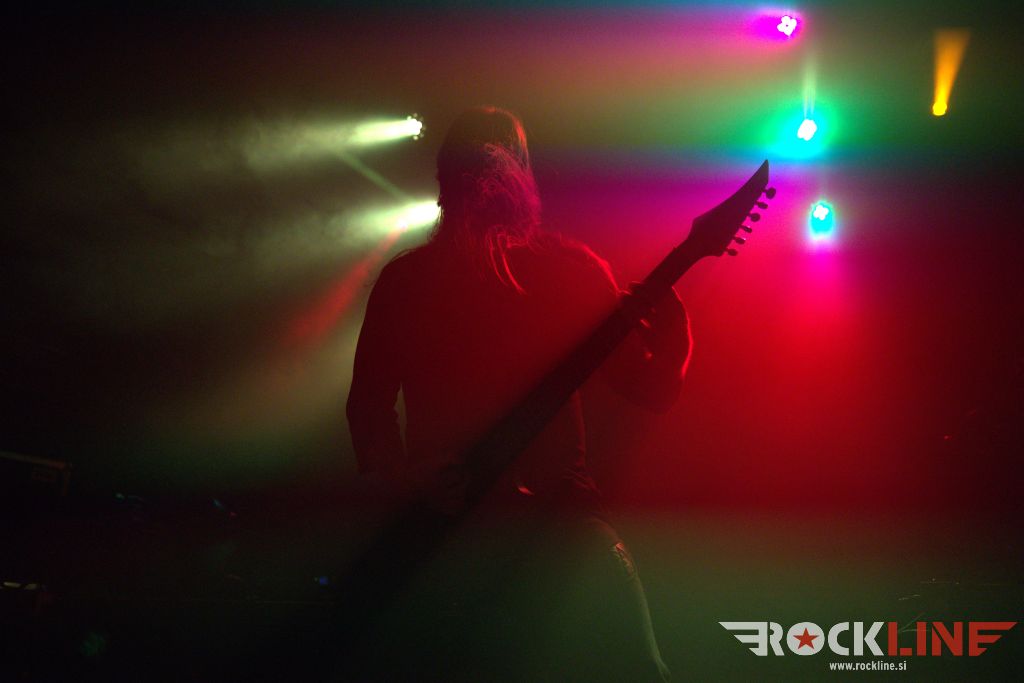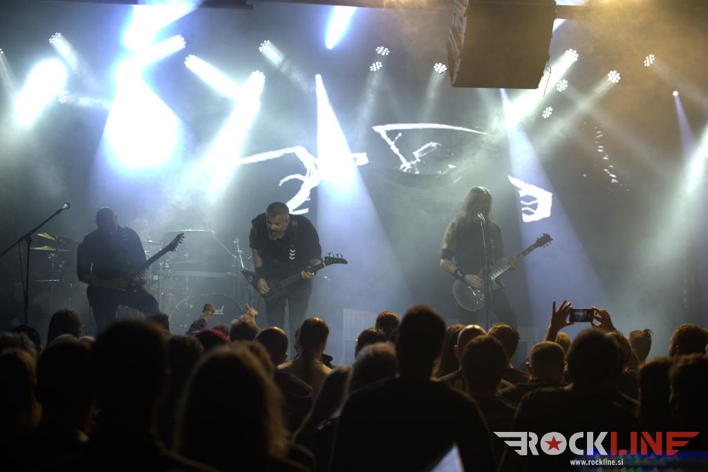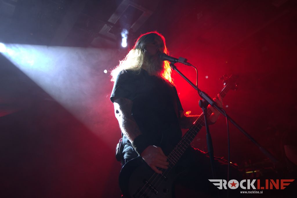 Oder so za Vreid nasledili veterani švedskega old school death metala Vomitory. Bend, ki je bil ustanovljen še v osemdesetih, je prav med to turnejo izdal nov studijski album “In Death Throes”. Ko so prispeli v Ljubljano je bil novi album napolnil ravno en teden starosti. Vomitory so kvartet, v katerem sta od originalnih članov danes brata, bobnar Urban in kitarist Tobias Gustafsson, postavo pa zaokrožata basist in vokalist Erik Rundqvist, ki vztraja v ekipi vse od drugega albuma “Redemption” dalje ter novinec Christian Fredriksson, ki je leta 2025 prevzel nase breme igranja glavne kitare. Vomitory so dokazali na tej predstavi, da ostajajo brezgrajna old school death metal mašinerija nepopustljive brutalne pogube, ki se čvrsto oklepa tudi gore diktatov. So bruhajoča mesoreznica. Izvedbeni format kvarteta ostaja nepopustljivo ošiljena, ostra in brezmilostna horda. Bend je odprl koncert s starejšo točko kariere, naslovno skladbo albuma “Revelation Nausea”, predstavil tudi dve točke najnovejšega albuma “In Death Throes” (For Gore And Country in Wrath Unbound) ter uničeval s svojo poltonsko, nizko hrumečo uglasitvijo plazovite riffovske kanonade skozi serijo stare šole death metalskega pohujšanja, ko so se zvrstile tudi Terrorize Brutalize Sodomize, Rage Of Honour, All Heads Are Gona Roll (vzeta iz prejšnjega, istoimenskega albuma), Regorge In The Morgue ter sklepna Chaos Fury. Publika pa je sodelovala s skupino v vratolomni ekstazi. Doza satanske gore uničevalnosti je bila naravnost sanjska.