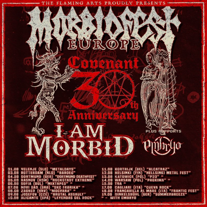 Datumi so umeščeni med 1.8 in 19. 8. 2023, skupina pa bo posebno pozornost posvetila 30. obletnici tretjega Morbid Angel albuma “Covenant”, ki je izšel leta 1993 in je smatran za enega največjih albumov v žanru death metala.