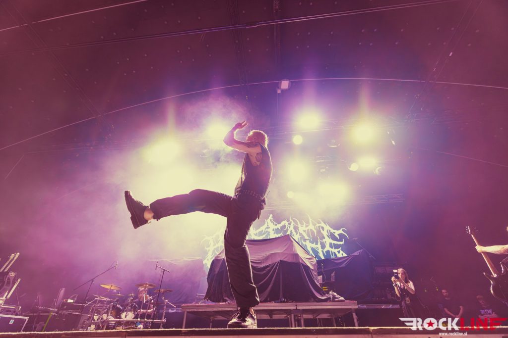 Paleface Swiss je bend s povsem druge sfere. Kvartet je prispel v Ljubljano s tretjim studijskim albumom “Cursed”, ki je izšel takoj po novem letu! Bend iz Züricha, ki deluje od leta 2017, je ne glede na relativno kratek staž delovanja, v vsem opravičil svojo pozicijo v line-upu nastopajočih! Skupino je med koncertom spremljal le nesrečni splet slabših zvočnih razmer, sicer pa tornado v eni besedi. Takoj pozabiš na vse ostalo. Skupino krasi izjemna vnema in angažiranost. Predvsem na krilih neverjetnega vokalista Zellija, ki je ob arzenalu core screamov, growlov in delov, ki jih je bliskovito odrapal, fenomenalnim podžiganjem publike, vpletanjem humoresk, je publika skozi dobre pol ure nastopa skupine, kar samodejno drla v prednje vrste. Zelli je uspel dvigniti kvišku več kot pol dvorane, da je ta enovito norela na nogah in bolj ko se bližale zaključne minute nastopa skupine, bolj je vrelo na prizorišču. Bend je pretežno predstavljal material najnovejšega albuma “Cursed” ter predstavil tudi nealbumsko I Am The Cursed One.