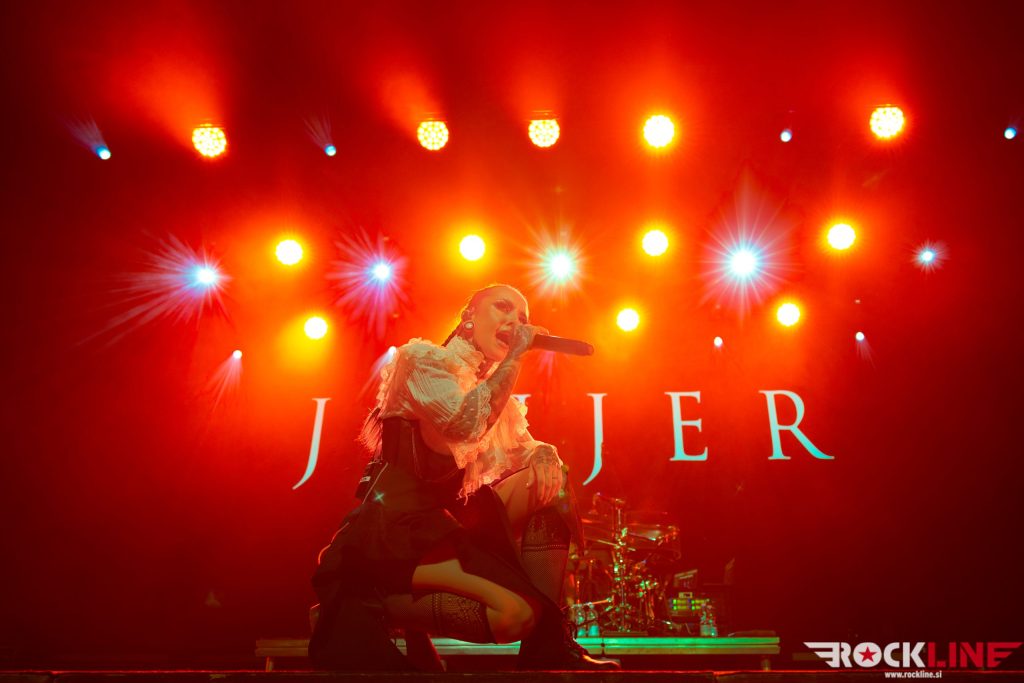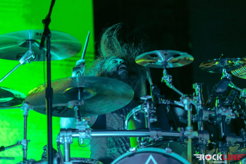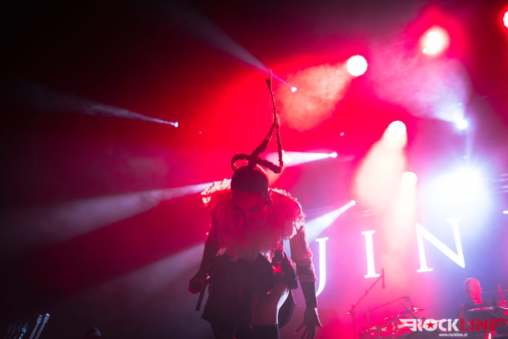 Jinjer, naši stari znanci, so ponesli razvoj dogodkov na višjo zvočno raven! Zvok med koncertom je bil odlično uravnovešen in ‘groove’, ki ga ta skupina kontrastno vzpostavlja na koncertih in zaradi česar je še posebej privlačna, je pošteno grabil. Seveda je glavnino pozornosti prevzela pevka Tatiana Shmayluk s svojo karizmo in neverjetnimi vokalnimi akrobacijami, ki zavzemajo v isti sapi agresijo growl naskokov ter na drugi strani muzikalnost in milino soul, R & B pa tudi pop momentov. Trije fantje v ekipi ostajajo neverjetno koherenten in naoljen stroj, ki vzdržuje mojstrsko kinetiko tehnične kompleksnosti modnih dognanj v sferi ekstremnega metala (tudi ‘djent’ finese), medtem ko ostajajo tirnice odebeljenega ‘groova’ vrsta hipnoze, ki je v vsem opravičila visoka pričakovanja koncertnega nastopa, po čemer slovi skupina. Najnovejši in skupno peti studijski album “Duel” je bil zastopan v večinskem deležu repertoarja, bend je dostavil v drugi polovici tudi dve točki prebojnega albuma “King Of Everything”, I Speak Astronomy in v samem zaključku (pričakovani) single Pisces, s katerim je sklenil novo fenomenalno predstavo, visoke uigranosti z eksekucijo materiala na tehnično kompleksni ravni! Koncert odličnih zvočnih karakteristik pod poveljstvom nove v vsem prevzetne predstave s strani Tatiane Shmayluk.