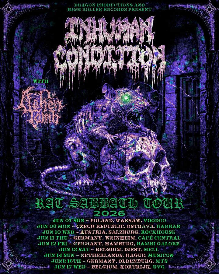 Inhuman Condition, ameriška death metalska senzacija, ki jo zastopa trojica veteranov ekstremne glasbe, mdr. dobro znanih v sodelovanju znotraj zasedb Obituary, Death in Deicide, objavljajo datume evropske “Rat Sabbath” turneje! Vlogo ogrevalne skupine bodo na turneji opravljali Ashen Tomb. Datume lahko preverite spodaj.