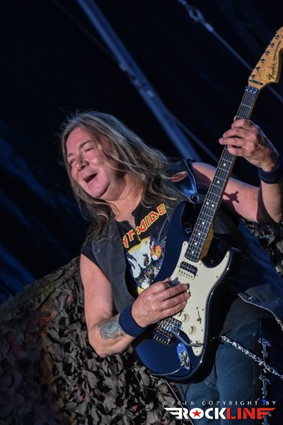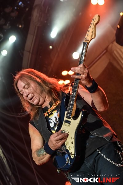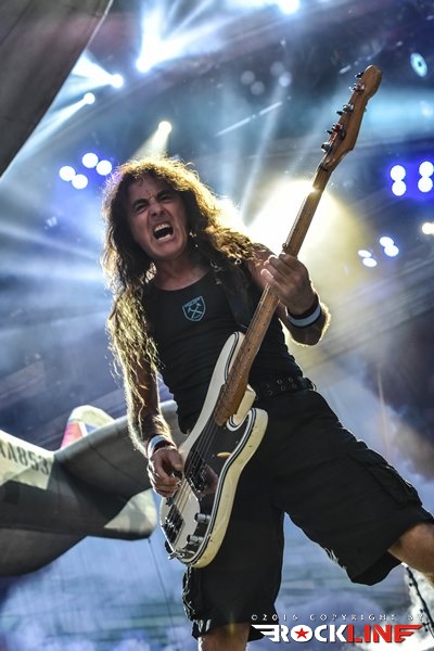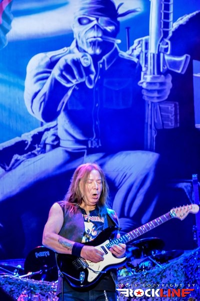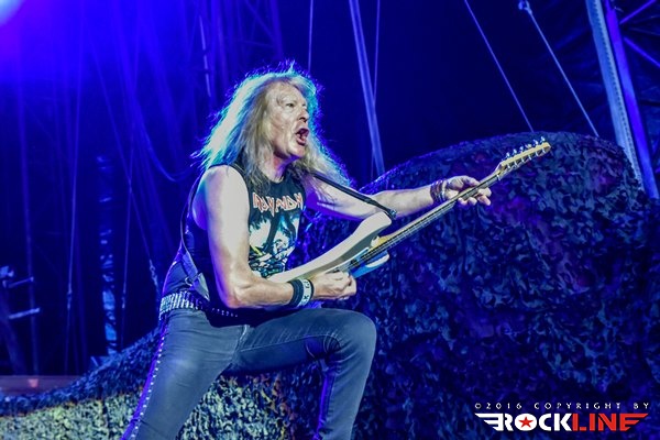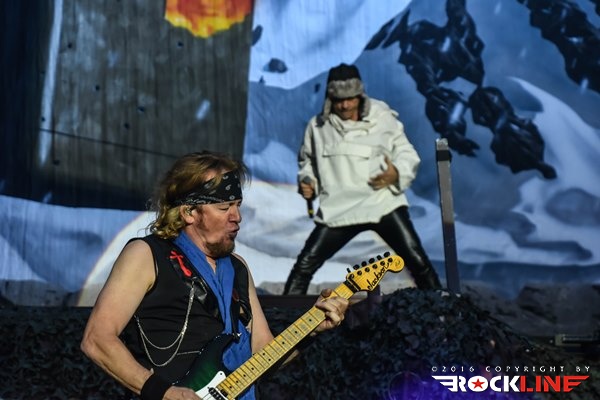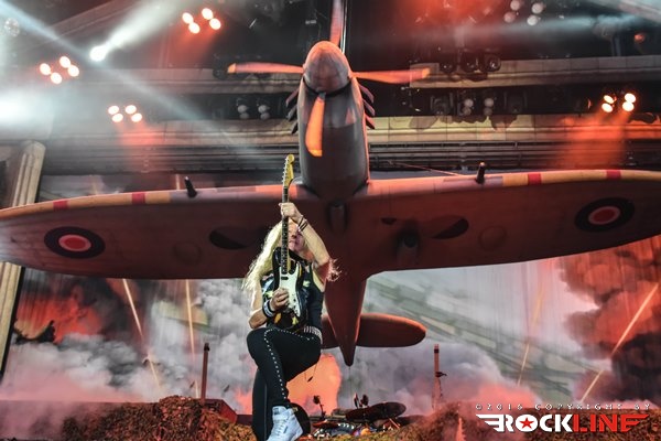 Sonce nad Trstom je počasi zahajalo in največji tržaški trg je eksplodiral, ko se je iz zvočnikov oglasila UFO klasika Doctor Doctor, takoj zatem pa še prodorni glas buldoga druge svetovne vojne, britanskega premierja Winstona Churchilla, ki je jasno napovedal himno zračnim junakov Bitke za Britanijo in enega najbolj udarnih in prepoznavnih komadov Devic, Aces High. Med publiko je završalo, ko je na oder pritekla legendarna šesterka z Dickinsonom, pokritim s pilotsko čepico na čelu, ki je v svojem elementu skočil visoko pred sprednje monitorje in s prvimi verzi jasno nakazal, da v tako dobri vokalni formi ni bil že lep čas. Iron Maiden so že med prvimi sekundami tržaškega nastopa poskrbeli za naravnost epski razgled, ko se je iznad Nickove flak baterije nad bend dvignil gromozanski Supermarine Spitfire z vrtečim se propelerjem vred! Železne device so to pot po dolgem času z izborom komadov pripravile nekaj nepričakovanih in čudovitih presenečenj, prvo že na samem začetku, ko so ostali v tematskih vodah druge svetovne vojne z Where Eagles Dare. Komada, ki ga je navdihnil istoimenski roman po katerem je bila leta 1977 posneta klasika z Richardom Burtonom in Clintom Eastwoodom, niso Iron Maiden igrali vse od turneje Eddie Rips Up World leta 2005. Kljub temu je bend od kultnega Nickovega uvodnega rollinga, s katerim se je davnega 1983. prvič predstavil fenom Devic, zvenel brezhibno, a hkrati organsko in naravnost magično, pa je bilo to šele začetek drugega tržaškega druženja z Britanci. Rockerska in nekoliko prežvečena 2 Minutes to Midnight je na noge dvignila italijansko publiko željno največjih hitov, za vnovično presenečenje pa poskrbela devet minutna mojstrovina The Clansman, eden redkih svetlečih trenutkov albuma Virtual XI in kocinedvigajoč je bil trenutek, ko je refren »Freedom!« odmeval iz deset tisočih ust. Predstava gospodov, ki nosijo že šest križov (z izjemo Brucea, ki bo šestdesetko srečal čez dobra dva tedna), najstarejši Nicko McBrain pa jih šteje že kar 66, je milo rečeno osupljiva. Toliko dinamike in gibanja na odru je videti od redkokaterega benda, a je temu treba dodati še briljantno predstavo prav vsakega od Devičnikov. Rezultat je lahko le spektakel kot ga znajo ponuditi le Iron Maiden in ki nahrani tako oči in ušesa, kot tudi dušo in srce.