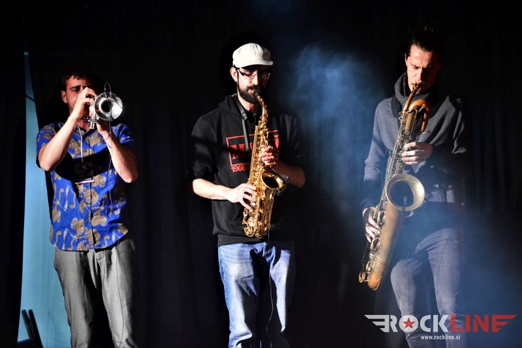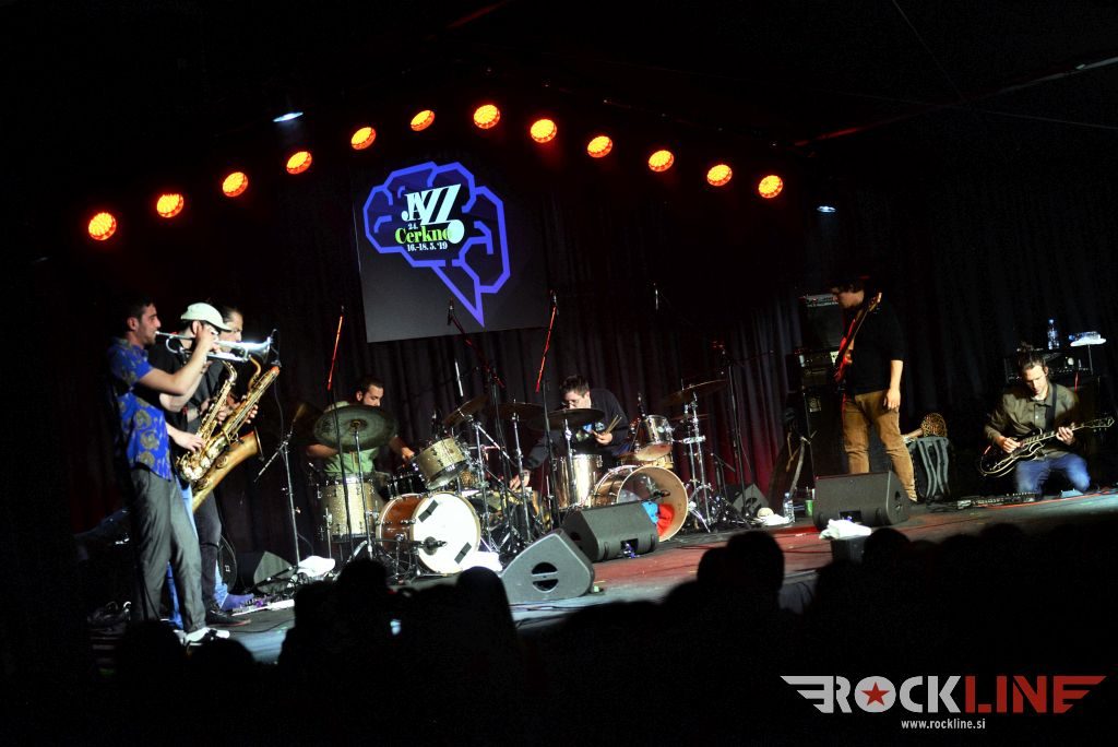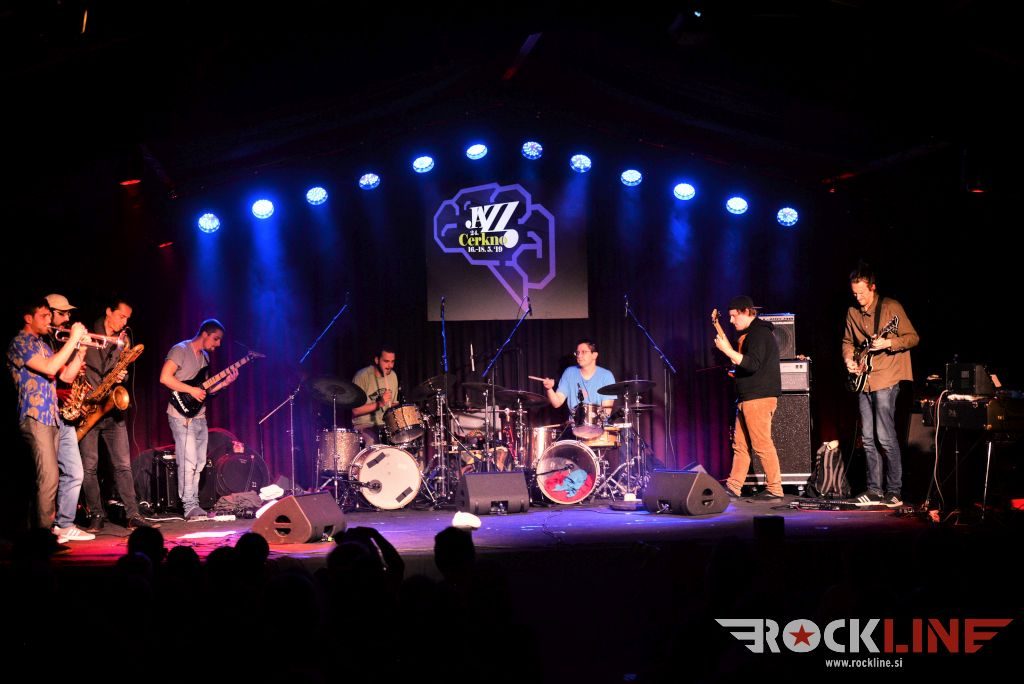 Drugi dan Jazz Cerkno festivala! Prvi izmed treh nastopajočih programa na drugem dnevu festivala so bili Koromač. To je sicer tista, po okusu (lahko za marsikoga) malo »zajebana« rastlina, ki je nekaterim zelo všeč, drugi pa se nikakor ne morejo navaditi na njen specifični okus. Podobno lahko trdimo za slovensko zasedbo takšnega imena doma iz Vrtojbe, ki je že dolgo pred koncertom sproščeno rajala v preddverju bara Gabrijel. Lahko jih le močno ljubiš, ali pa te ne zgrabijo. Koromač smo pred časom, to je pred tremi leti, gledali v ljubljanski Gala hali, v sklopu domorodnih četrtkov čislanega kluba. V žepu imajo Koromač studijski prvenec »Punk Enough?« (2015) – RockLine recenzija TUKAJ, ki je prav tako že lep čas zunaj in naravnost povedano »zastarel«. Če kdo od skupine tole bere, bo takoj poštekal zakaj je zastarelost v tem kontekstu smiselno uporabljeni pridevnik, pa vendar. Bend oziroma orjaška ekipa, ki je zastopana z dvema kitaristoma, dvema bobnarjema, jedro pihalno sekcijo tenor, alt saksofona ter trobente, nadalje basistom ter klaviaturistom, je zrasla v neverjetno prodorno telo glasbene izpovedi. Naj osvežimo imena aktualne postave: Matjaž Bajc (el. bas), Urban Kušar (bobni), Žiga Ipavec (bobni), Aljaž Škrlep (el. kitara), Anton Lorenzutti (el. kitara), Jure Boršič (altovski saksofon), Boštjan Simon (tenorski in baritonski saksofon), Francesco Ivone (trobenta) in Giorgio Pacorig (Korg MS-20, Rhodes).