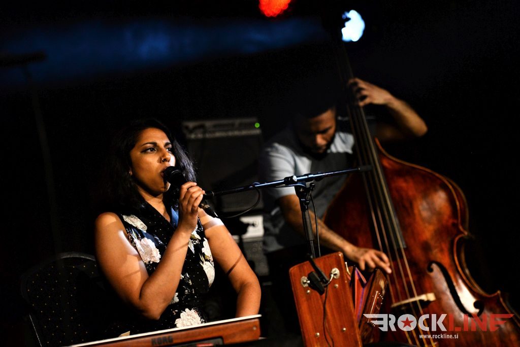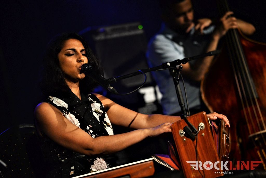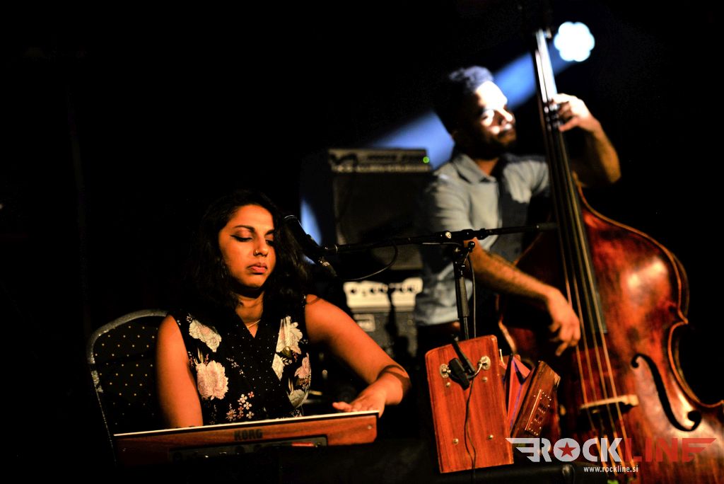 Popoln unikat pa so dostavili v nadaljevanju Amirtha Kidambi Elder Ones, ki jih vodi ameriška glasbenica indijskih korenin Amirtha Kidambi (glas, harmonij, sintetizator). Kvartet zaokrožujejo še Matt Nelson (sopran saksofon), Nick Dunston (kontrabas) in Max Jaffe (bobni, elektronska senzorična tolkala). Vsa reč se vrti okrog vokalne ekspresije slikovite Amirthe. Vsekakor je v kompozicijah večkrat uporabljen njen glas kot vodilni instrument, kjer se glasbenica sprehaja skozi proste vzgibe navdahnjenih improvizacij, do variabilnega izplena glasovnih nians, kar seveda vnaša obvezno tudi vzhodnjaški melos. Glas deluje na trenutke kot vrsta mantre. Lahko je pretresljiv, kričav, lahko te zaziblje in odpelje v mirne dušne kotičke. Uganili ste torej, da gradi kvartet na močni ambientalni opornici, kjer so linije harmonija (star instrument oziroma vrsta klavirja »na meh«) ter sopran saksofona večkrat poudarjeno podvojene ter kreirajo svojevrstno glasbeno krajino. Amirtha uporablja tudi mali sintetizator s katerim barva ozadje, v katerega se naslanja njena vokalna improvizacija. Bobnarske strukture so nenehno razgibane in z izvedbenim zaletom silne dinamike, na moč učinkovito rešetajo občasno mantro hipnotičnih zaves. Amirtha je vnašala tudi kup psihadeličnih vložkov, ne le z glasovno improvizacijo, pač pa tudi, kot že omenjeno, z linijami harmonija ter zvočnimi manipulacijami na sintetizatorju. Vokalna interpretacija se seveda dotika tudi petja, v klasičnemu pomenu te besede, kjer se Amirtha dotika kritične sporočilnosti (v rabi ni le angleški jezik), ko predstavlja skupina aktualni album »From Untruth«. Vokal je lahko zelo zajedljiv, nagovarja celo nadležno. Razpon je neverjeten. Razpon s katerim nagovarja Amirtha. Zavihti pa se lahko prav v nedrja popolne deviške miline. Vokalni kontrasti so izjemni. Tako pa tudi vzdušja, ki jih pričara kvartet. Večkrat so linije saksofona in vokalnih improvizacij medsebojno freejazzovsko prepletene, kar vzbuja tudi občutja kaosa. Kontrastni preskoki med kreacijo vzdušij so vseprisotni. Ko skoraj v hipnozi že zadremaš, te nenadni šundr povsem predrami. Vokal Amirthe zna biti zelo jezen, očitajoč, srborit in neotesan. Naj bom za zaključek banalen in površinski, a če se kdaj zgodi utopični The Cardigans reunion, bi z lahkoto vpoklicali v novo formacijo te ekipe prav Amirtho. Je pevka, ki s svojo izvedbeno karizmo ne le navdušuje, pač pa nenehno pretresa in preseneča.