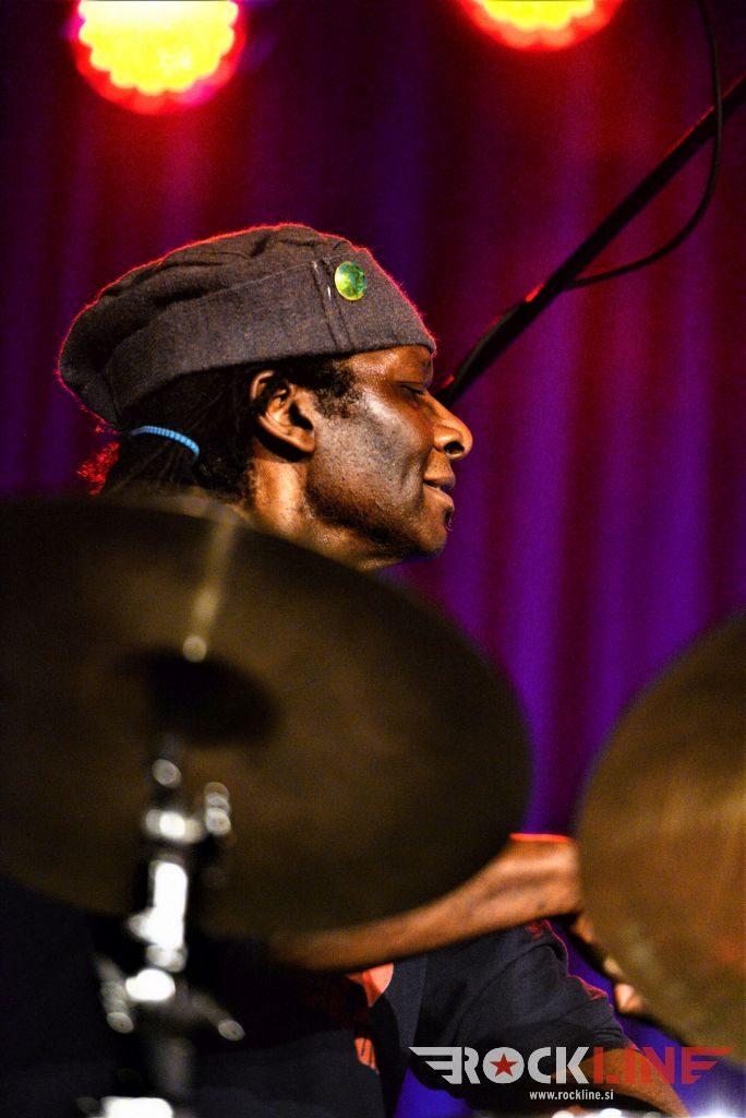 Največja atrakcija je v tej zgodbi seveda Hamid Drake. Legendarni bobnar in eden najbolj profiliranih glasbenikov avantgardnega bobnanja našega časa. V karieri je sodeloval z zares zvenečimi imeni sveta jazza in fuzije, kot mdr. Don Cherry, Herbie Hancock, Peter Brötzmann, Ken Vandermark, Fred Anderson, Pharoah Sanders in David Murray. Res skrajno dovršen in izpopolnjen čuvaj časa na bobnih, ki mu ni ušlo prav nič. Uročil je s svojo raznovrstnostjo, neverjetno duhovito iznajdljivostjo ter perfektno kontrolo nad vsem česar se je loteval. Stapljanje svetovne ritmike od afro kubanskih do indijskih, pa tudi latino ritmov, kar počne s peresno lahkoto in prepričljivo z rabo osnovnega seta bobnov. Preprosto je že samo njegovo bobnanje odpeljalo poslušalca v posebno sfero. Rdeče niti mu ne zmanjka in ne pripada mu zaman sloves, ki se ga je oprijel že v zgodnjih devetdesetih, da gre za enega izmed najbolj izpopolnjenih bobnarjev sodobnih jazzovskih impro-vragolj planeta. Nastop zasedbe je zato večkrat deloval tako, da se razvija povsem odvisno od postavljanja ritmičnega ogrodja Hamida Drakea, čeprav to nikakor ne drži. A prva in gotovo največja privlačnost nastopa te zasedbe, je sam čislani bobnar in njegova neverjetna veščina. Briljanten nastop, za briljanten zaključek drugega dne torej!