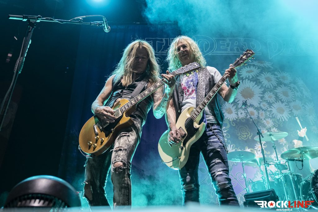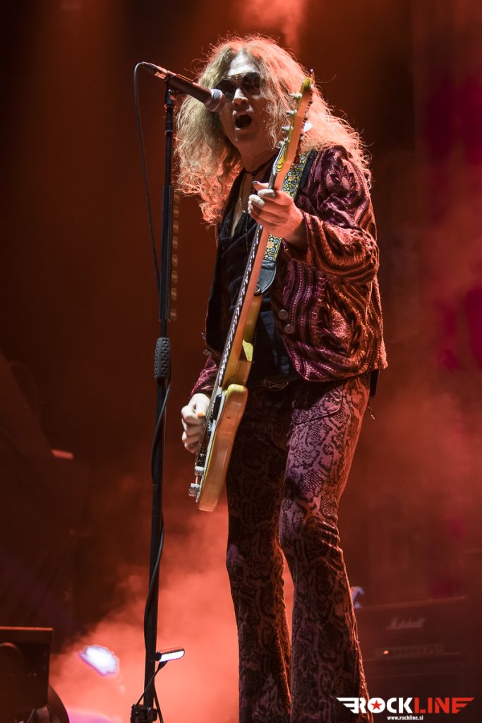 Judas Priest so za goste na tej turneji povabili rock superskupino The Dead Daisies, ki jo je leta 2013 ustanovil Avstralec David Lowy, nekakšna rock verzija Brucea Dickinsona, saj je poleg drgnjenja po šestih strunah še poslovnež in glej, glej pilot. Lowy je v The Dead Daisies v preteklih letih gostil sama imena, ki v rocku veliko štejejo (Darryl Jones, Dizzy Reed, Marco Mendoza, John Tempesta in še bi lahko naštevali), v tokratni inkarnaciji skupine pa mu pomagajo Doug Aldrich (kitara; Dio, Whitesnake), Brian Tichy (bobni; Whitesnake, Foreigner, Ozzy Osbourne) na vokalu pa nihče drug kot veliki Glenn Hughes (Deep Purple, Trapeze). The Dead Daisies so lani v tej postavi (na albumu je sicer bobnal Deen Castranovo) izdali ploščo Holy Ground in z nje je bend odigral pretežni del svojega štirideset minutnega nastopa. Žal se je znova pokazala stožiška hiba; slab zvok namreč, saj je vse skupaj zvenelo precej zamazano in doneče, kar pa se je k sreči do konca njihovega nastopa nekoliko popravilo. Kljub temu so gospodje še precej prazni dvorani pokazali pravo rock lekcijo, ki ji je kraljeval profesor rocka Hughes, osrednja figura na stožiškem odru. Neverjetno je bilo slišati kaj je iz svojega grla spravil sedemdesetletni gospod, ki se mu lahko zaradi neverjetno pestrega in vrhunsko ohranjenega vokala poklonijo tudi pol mlajši pevci. Hughes je tako kričal kot za stavo, med osupljivimi kriki poskrbel za vzdušne in čudovite vokalne linije, obenem pa še basiral kot za šalo. Aldricha je bil med številnimi solažami oder poln vsepovsod, tudi Tichy pa je navdušil s topovskimi salvami izza svoje baterije med katere je vpel precej pozerskega metanja in lovljenja bobnarskih paličic po zraku, s čimer je poskrbel za pravi šov. Hughes se je proti koncu seta skromno in ponižno zahvalil Judas Priest, da so jih vzeli s seboj na turnejo, nato pa so Marjetice Stožice za konec poteptale z večno Deep Purple klasiko Burn, med katero je Glenn Hughes še zadnjič upravičil svoj vzdevek The Voice of Rock.