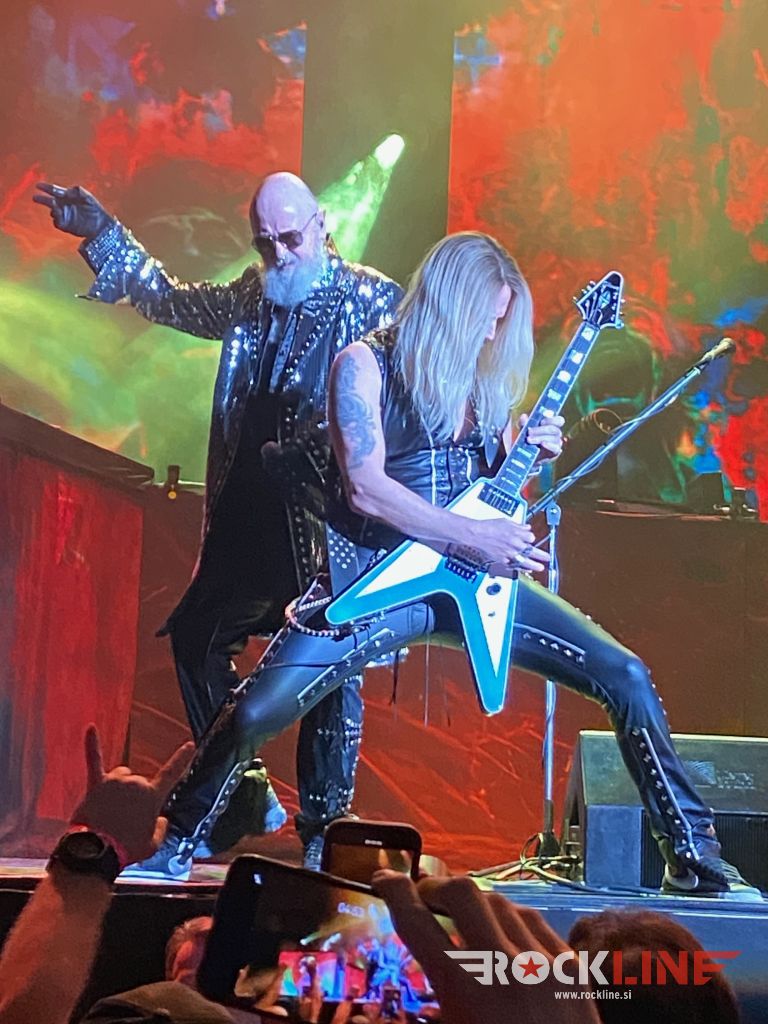 Judas Priest so kotalili komad za komadov. Izjemno spoznanje je, da Rob Halford ne uporablja več teleprompterja, kar pomeni da je na novi turneji obenem manjkrat pokrit s sončnimi očali, obenem pa z naskokom odrsko bolj agilen, kot kdaj koli v zadnjih letih. K temu dodaš izjemno vokalno formo v zrelih letih (s čimer ne gre prikrivati, da dobiva tudi konkretno podporo z mešalne mize), že kar pregovorno orjaško karizmo ter neverjetno suveren teater in igro, s katero mu publika je iz rok med koncertnim spektaklom. Halford je Halford. Eden in edini! Ena izmed najbolj znamenitih Ikona metala! In vselej, ko je bil na vrsti kakšen izmed njegovih znamenitih ‘scream-ov’, je publiko to izdatno obnorelo da je ta s povratnim šundrom nagrajevala, vokalno zmagovitost legendarnega frontmana, ki bo konec letošnjega avgusta napolnil neskromnih 73. let.