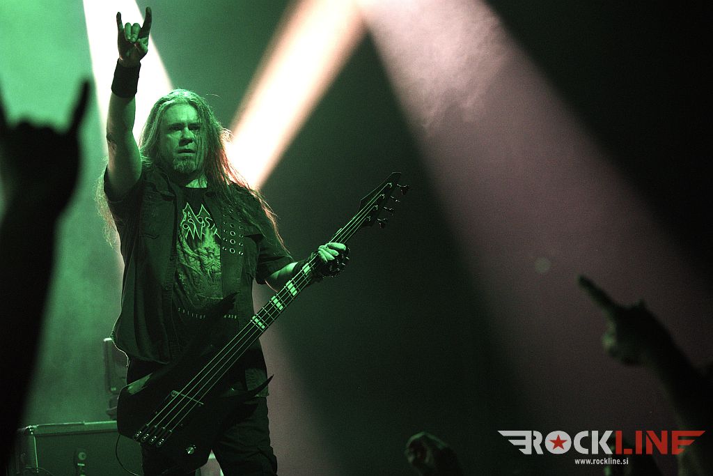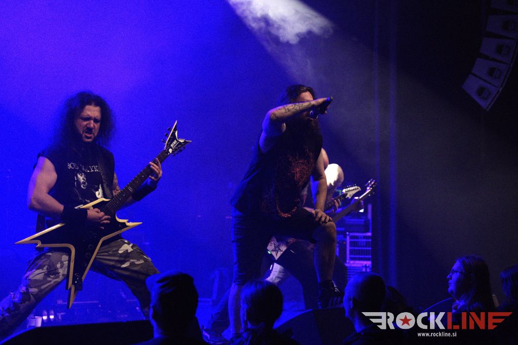 Vader so stopili malo preko osme zvečer na oder! Neuničljivi Poljaki, ki se na odrih podijo vse od leta 1983 dalje, so prešli krepko preko 40 let delovanja! Osrednjo pozicijo zavzema danes že kar legendarni šef skupine, njen growler in kitarist Piotr Wiwczarek. Kvartet, kjer držita Piotru neverjetno podporo izjemno zanesljiva kitarist marek Pajak in basist Tomasz Halicki, od leta 2022 dalje pa na bobnih Michał Andrzejczyk, je enkrat več potrdil svojo odrsko neprebojnost. Stara šola starinsko lomasteča beštija, ki pa ostaja personifikacija izjemne izvedbene prepričljivosti. Silovitih 45 minut, pri čemer so Vader potrebovali kar nekaj časa, da so spravili na zadovoljive obrate občinstvo. Se pravi obrate, ki kreirajo vsaj konkretno moshanje. Četudi so odprli koncert s klasiko Sothis iz drugega “De Profundis” (1995) in sta temu sledili Fractal Light iz tretjega albuma “Black To the Blind” (1997) in potem še Wings iz četrtega “Litany” (2000), je publika delovala sprva precej rezervirano. Večina je prišla tega večera očitno v Ljubljano na Kataklysm. Vendar ko se je narod predramil, moshanje in norenje ni popuščalo. Vse do konca nastopa legendarnih Poljskih metalskih ekstremistov.