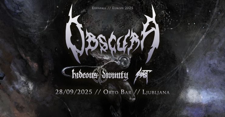 V nedeljo 28. 9. 2025 bodo v ljubljanskem Orto baru ponovno nastopili nemški progresivni/tehnični death metalci Obscura. Z Obscuro bosta v vlogi predskupin nastopili Hideous Divinity – italijanski death metalci ter Sadist – kultni ameriški veterani progresivnega death metala!