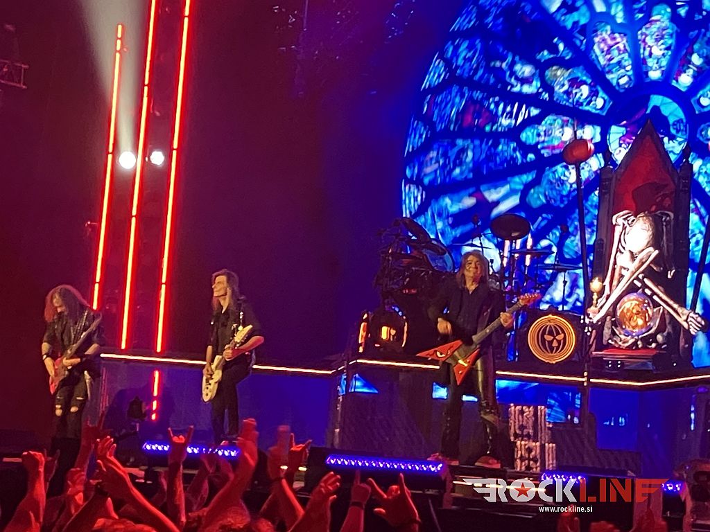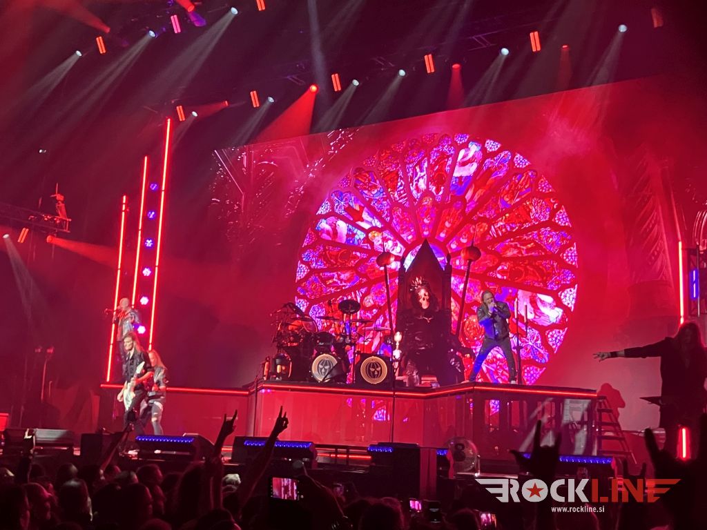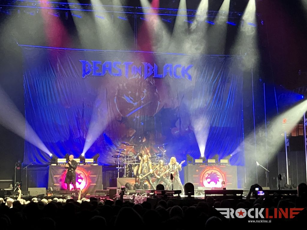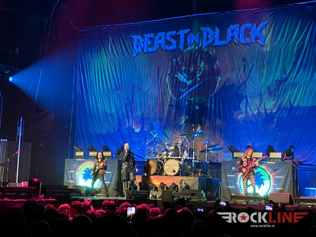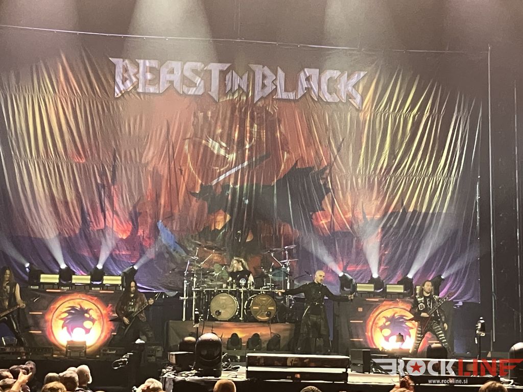 Pred Unipol Forum sem prispel kake pol ure pred koncertom in res je bilo lepo videti dolge vrste metalskih kreatur, ki so se skozi različne vhode vile v dvorano. Po hitrem nakupu tour majčke in osvežitvi z ipo po zasoljeni ceni sem se odpravil pogledat finsko-mednarodne disko metalce Beast in Black, ki na turneji opravljajo funkcijo zelo posebnih gostov. Bend je po tem, ko so ga brcnili iz Battle Beast, leta 2015 ustanovil finski kitarist Anton Kabanen, ki po vzoru prejšnjega benda še vedno skrbi za ves avtorski material. Glasba Beast in Black mi ni neznana, njihov prvi singel Blind and Frozen je prava mojstrovina evrovizijskega metala. Do sedaj so izdali tri albume in setlista je bila mešanica skladb z vseh treh in dveh singlov s prihajajoče plate, poimenovanih Power of the Beast in Enter the Behelit. Med njihovim nastopom je bila dvorana skoraj do polovice polna, kar dokazuje, da so si fantje že nabrali kar lepo bazo oboževalcev.