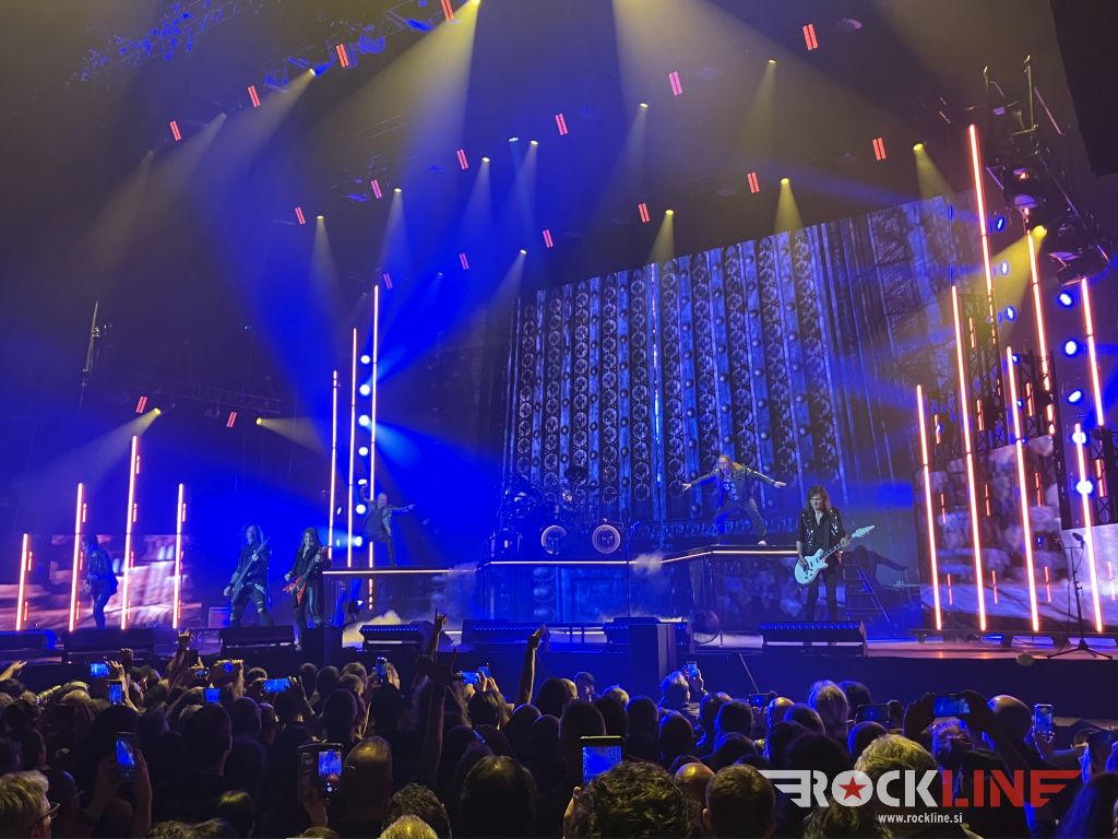 Kratek premor za ipo, potem pa je Robbie-jeva Let Me Entertain You najavila zvezde večera, veteranske metalske buče. Dvorana se je skoraj napolnila, po moje nas je bilo kakih 12.000. Lepa številka za Helloween, mislim, da so s to turnejo preskočili velikostni razred ali dva.