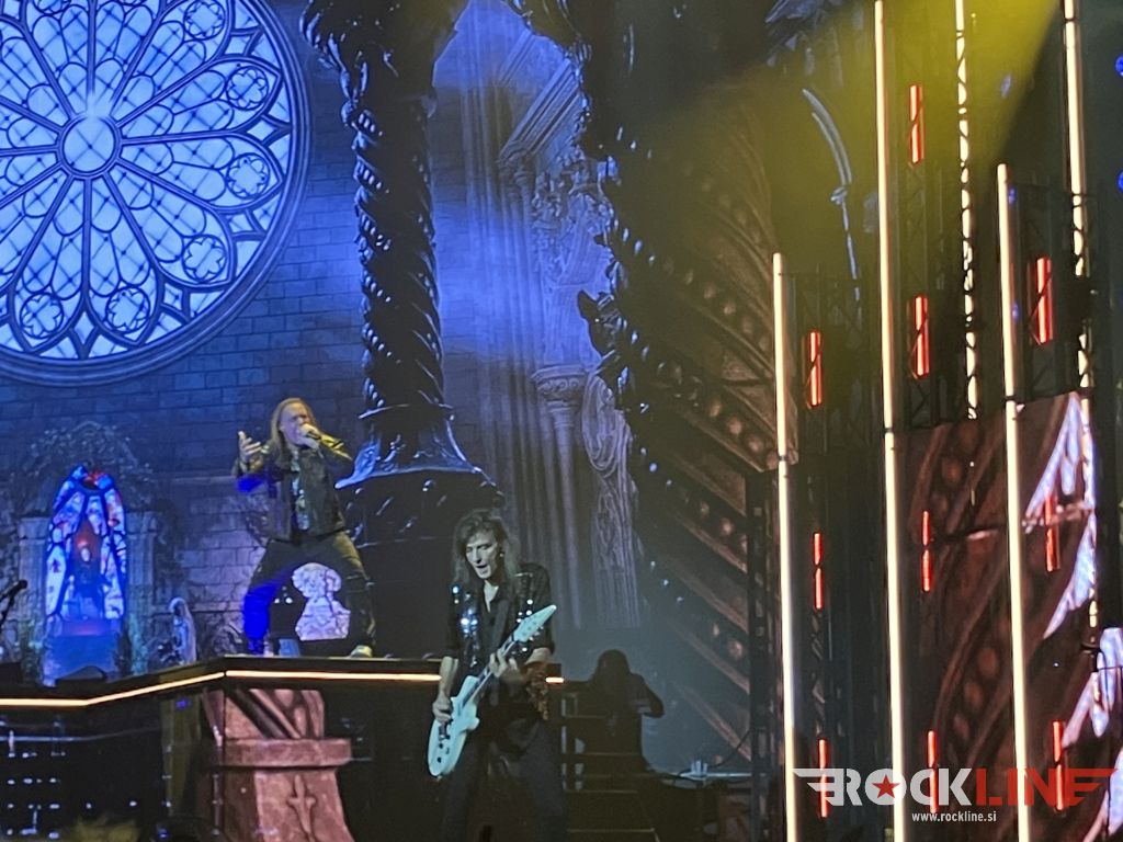 Začelo se je megastično, z malce pozabljeno Hansnovo skladbico March of Time z drugega Keeperja. Presenetljivo sta vokalne moči združila Kiske in Deris, kajti na dosedanjih turnejah sta ponavadi solo odpela komade iz svojega obdobja v bendu, skupaj sta odžgolela le kakšno baladico in kakšen daljši ep. Udarec je bil silovit in publika je takoj na(d)gradila dogajanje z visoko energijo in angažiranostjo. Po koncu komada je prvič nastopil animirani Čuvaj sedmih ključev, ki je med koncertom opravljal vlogo naratorja, ki je izpostavljal ključne dogodke v karieri benda. Dueti so se nadaljevali tudi v naslednjih treh komadih in kasneje tokom koncerta. Setlista je bila lepo uravnotežena, navdušenje je malce upadlo le pri štirih kompozicijah z najnovejšega albuma Giants and Monsters (recenzija tukaj). Pri 22-ih izvedenih pesmih pa so te štiri pravzaprav prišle prav za predah.
