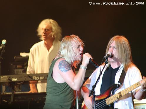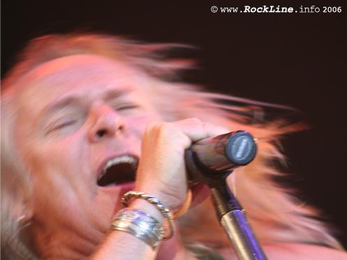 Še vedno fanatičen na Uriah Heep po vseh teh miljonih kilometrine koncertne rutine! A ko kri v venah zavre, veš da si prišel na koncert svoje najljubše skupine. Ravnokar so me oblili mravljinci, le spomnil sem se na svoje novo nepozabno druženje z Uriah Heep v Wiesnu! Uriah Heep so nastopali peti po vrsti in njihova naloga je bila, da vrnejo nazivu festivala “Legends Of Rock” njegov pravi pomen. Uriah Heep so stari znanci Wiesna in zelo priljubljen in cenjen, da ne rečem visoko spoštovan bend v Avstriji. Prostor pred odrom je bil znova fenomenalno nabit in to je naznanjalo pravi juriš!!! So Tired in tu so! S So Tired so presenetili, saj gre za eno šibkejših točk albuma “Wonderworld” (1974) in nekako ne ravno najbolj posrečeno izbiro za otvoritev koncerta. Morda so hoteli Heep povedati, da so malček utrujeni in morda nasičeni vsega. A to nikakor ni bilo mogoče! Vsekakor te moje nizkotne analitične opazke ni bilo mogoče čutiti, saj je množica dobesedno nosila skupino na krilih evforičnega navdušenja, skozi to otvoritveno skladbo Heep koncerta. No moje tarnanje o otvoritvi koncetrta je bilo takoj še dodatno utišano z izjemno AOR skladbo Cry Freedom (“Raging Silence”, 1989), kjer je Bernie Shaw prvič opozoril, da gre za “hudičevega” vokalista! Tretja pesem je bila dobeseden šok, saj so Heep izbrali kar skladbo John Lawtonove ere, ki je sila težak zalogaj za interpretacijo slehernega vokalista, s še tako “streniranim” glasom ali prirojenim občutkom za petje. Skladba Faling In Love (“Fallen Angel”, 1978) je napolnila prostor z energijo! Po njej so fantje brez pavze prešli na enkratno Words In A Distance (“Sea Of Light”, 1995), kjer je ta energija bila le še nadgrajena in koncert se je sedaj resnično razplamtel! Uriah Heep so pristopili kot ne pomnim! Lani na Biker’s Festu ob Faaker See-ju je bil oder skoraj deset metrov oddaljen od publike, predlani so napolnile Carl Orff Saal v Muenchnu same stare mame z abonmaji na Heep akustični turneji, 2003 so Heep igrali pred pol manjšim številom udeležencev v Muffathalle v Muenchnu in 2002 v Italiji (6.7.2002, Riolo Terme), kjer pač Heep ne zažigajo tako kot v deželah germanskih narodov. To pot je izgledalo vse idealno. Prostor nabit z ljudmi, množica tik ob odru. Pogled na rajajočo publiko je predramil skupino in ta je resnično pristopila s svojim polnim zaletom. Celo Trevor Bolder je izvedel nekaj sunkovitih gibov, nasploh med svojim bliskovitim šprudlanjem po bas kitari, ko je prav energično vlekel “licke” vzdolž strun. Ravno Bolder je navadno najboljši indikator splošnega počutja in delovnie kemije skupine na odru. Bolder je bil to pot “navihan” kot ne pomnim in to je pomenilo, da ostali člani sploh galopirajo po odru 200km/uro. Box se je konstantno zabaval z “yogi” gestami in užival energijo, ki mu jo je pošiljala množica, prav tako pa je neznansko užival, ko je hecal fane v prvih vrstah glede deljenja trzalic. Vsekakor kitarist, ki najlepše vrže trzalico iz rok