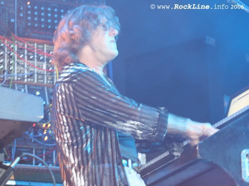 Ob 0:30 so Emerson in njegova skupina, v kateri so bili poleg njega še kitarist/pevec, bobnar in basist, prikorakali na oder. Emerson je s posivelimi, a dolgimi lasmi, še preden je začel igrati deloval vitalno (ohranil je tudi nekaj svojega glam imidža iz 70-ih). Ko je privil gumb na svojem moog modularju in je ta začel izvabljati elektronske zvoke, so bili vsi pogledi prikovani nanj. Priznam da sem najprej pomislil da je kaj narobe saj so se tako Keith kot člani njegove skupine ob tem zvezdavo muzali in zmajali z glavo. Nenadoma pa sem prepoznal tisti elektronski efekt ki je predstavljal uvod v nepozabni ELP sci-fi ep “Karn Evil 9” (natančneje sekcijo 1st impression part 2) z nepozabne “Brain Salad Surgery” (1973) in skupina je nemudoma poprijela za svoje inštrumente. Moja pozornost je bila razumljivo večino časa usmerjena k Emersonu, ki je po vseh teh letih izgubil le malo svoje hitrosti in obvladovanja inštrumentov s tipkami in je z lahkoto igral hkrati na dva inštrumenta . Pevec-kitarist Marc Bonilla je začel peti nepozabne verze “welcome back my friends to the show that never ends…” Njegov vokal je bi nenavadno podobne Lakeovemu, tako da sem na trenutke pomislil, da prisostvujem “pravemu” ELP nastopu. Izjemna vokalna podobnost, rahlo pa tudi fizična. Kar se pa njegovega obvladovanje kitare tiče pa Bonilla nese Lakea po celi črti. Seveda je to rahlo krivična izjava, kajti Bonilli je delal družbo tudi odlični basist Phil Williams medtem ko je bil Lake zadolžen za oba inštrumenta, v glavnem bas. Williams je tudi odličen glasbenik ki velikokrat igra bas kot kitaro, kar je pokazal tudi v svojem kratkem solo nastopu. Keith je nato predstavil skupino in sledilo je veliko presenečenje. Namreč skladba katere ELP nikoli niso igrali v živo – “Living Sin” (Trilogy, 1973). Bonilla je vanjo vnesel tudi nekaj svojega načina petja, dodal pa je tudi nekaj novih aranžmajev na kitari in skladba je zvenela dosti trše kot v izvirniku. Album “Trilogy” se je nadaljeval z inštrumentalom “Hoedown” (original A. Copland), še eno klasiko ELP, ki jo je Emerson odlično raztegnil, a se ves čas držal originalnega motiva. Od vseh izvedb na koncertu je ravno “Hoedown” izpadla najbolj podobna studijski verziji. Skladbe s “Trilogy” so naravnost izdelane za koncertne izvedbe saj sodijo med kompaktnejša dela ELP. Nakar je sledilo še eno presenečenje. Lakeova nesmrtna balada “Lucky Man” (Emerson, Lake & Palmer, 1970), sicer največji hit skupine. Bonnila je skladbi pridodal povsem nove aranžmaje kar je pridodalo k njeni globini. Zlasti je navduševal njegov vesoljski solo na kitari pa Emersonov podaljšan solo ob zaključku. Nedvomno verzija ki je kar se dodelanosti in aranžmajev tiče presegla original, čeprav pevec tokrat vokalno nekako ni uspel popolnoma ujeti originalne Lakeove magije. No, potem je Keith napovedal zelo staro kompozicijo še iz leta 1968. Takoj je bilo jasno da je reč o The Nice klasiki. Sledila je “America”, priljubljena The Nice skladba, ki je znana po tem da je Keith pred mnogimi leti med njo protestno zažgal ameriško zastavo in zato kar 25 let ni smel nastopati v kraljevi filharmonični dvorani. No, tokrat je seveda nastop minil brez najmanjšega incidenta, Emerson pa je dokazoval svojo perfektno obvladovanje klasičnih aranžmajev, skupaj z Bonillo pa sta se v nekem delu lotila tudi orglic. Keith je kasneje s spretnim preobratom kompozicijo prevesil v “Rondo”, kjer si je s pomočjo prenosnega sinthesizerja privoščil tudi komičen “dvoboj” z Bonillo. Nato je sledilo tisto na kar sem ves čas pred koncertom po tihem pobožno upal – ena najboljših kompozicij kar jih je kdaj ustvaril človeški um. Fantastična suita “Tarkus” (1971), ki v svoji dolžini več kot 20-ih minut pripoveduje zgodbo o vzvratni evoluciji po atomski vojni, ko so zavladali živali-stroji in je tank-pasavec Tarkus začel svoj neusmiljeni bojni pohod. Ko je Keith na hammond orglah začel igrati uvod “Eruption” so mi šli mravljinci po telesu. Ta namreč vsebuje tisti njegov znameniti solo, ki je osnovna podlaga ene najboljših inštrumentalnih in najbolj vplivnih stvaritev za klaviaturiste. Bonilla je odigral pridodane solaže na kitari tam kjer jih ni, v bistvu je v originalu ta samo v enem delu (“Battlefield”) on pa je ves čas skoraj enakovredno spremljal Keitha. Ko je sledil nesmrtni del “Stones of Years” je Bonilla ponovno zvenel kot Lakeov dvojček. V delu “Battlefield” pa je z znamenito floydovsko solažo ponovno preusmeril pozornost nase. Na določenem mestu si je bobnar Pete Riley privoščil tudi solo točko in dokazal, da je nadvse solidna “zamenjava” za Palmerja. Ko se je na koncu prek Keithove solaže na hammond orglah ponovil glavni motiv (Aquatarkus) in s tem konec celotne kompozicije je Emerson v mojih očeh dokončno potrdil svoj renome ter dokazal, da je po vseh teh letih še vedno med najboljšimi v poslu. Tako sem dočakal enega najveličastnejših koncertnih trenutkov do zdaj, katerega z besedami ni mogoče opisati. Ne samo, da je bil “Tarkus” odigran v celoti, podaljšali so ga za celih deset minut. Prišel, videl, zmagal – “Tarkus” je bil za mene ne samo vrhunec Emersonovega nastopa temveč celotnega festivala. Skupina se je po kratkem premoru vrnila za dodatek. Na moogu so se zaslišale fanfare in sledila je “Fanfare for a Common Man” (The Works – Vol. 1, 1977) brez katere pač ne gre. Ponavadi je odigrana ali na začetku ali na koncu koncerta. Emerson je v njega ves čas spretno vnašal motive iz najrazličnejših glasbenih predlog, od rocka do klasike. Poslušalci so v enem izmed motivov lahko takoj prepoznali Van Halen skladbo “Jump” (ob tem je bilo njihovo navdušenje nepopisno) pa znano Bachovo simfonijo, čmrljev let ter del “Nutcrackerja” (v The Nice/ELP verziji imenovan “Nutrocker”). Pri tem je Keith demonstriral najrazličnejše načine igranja