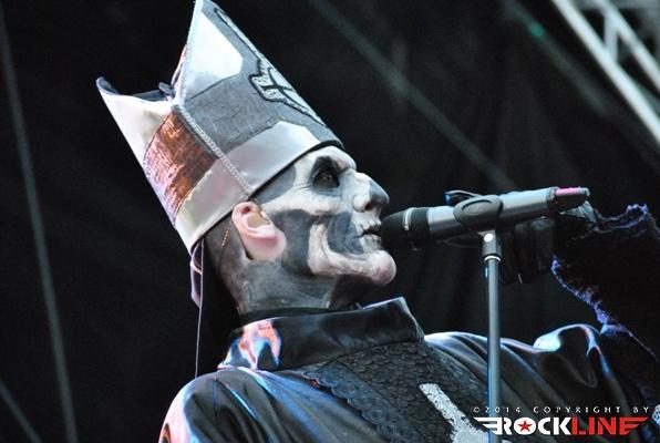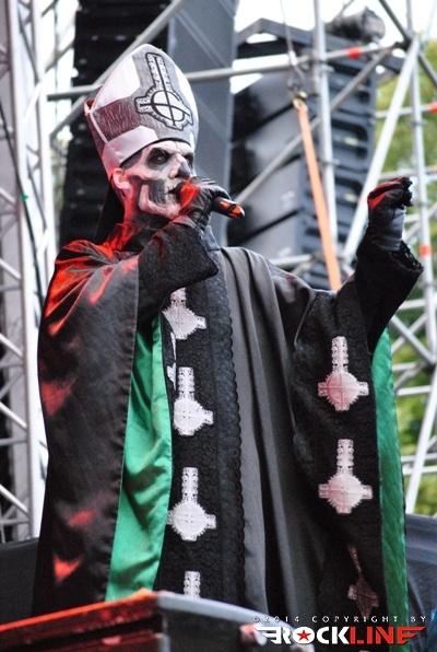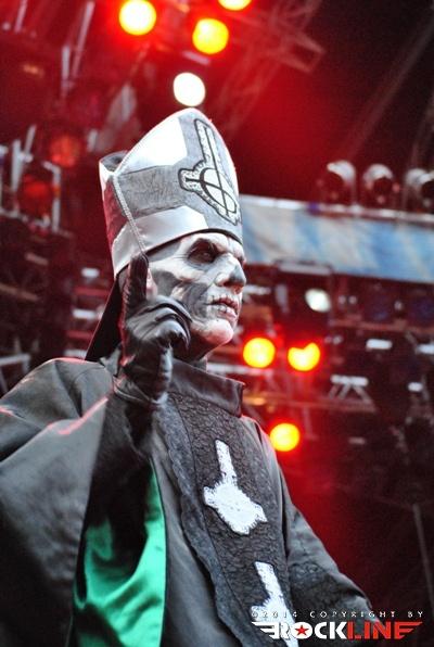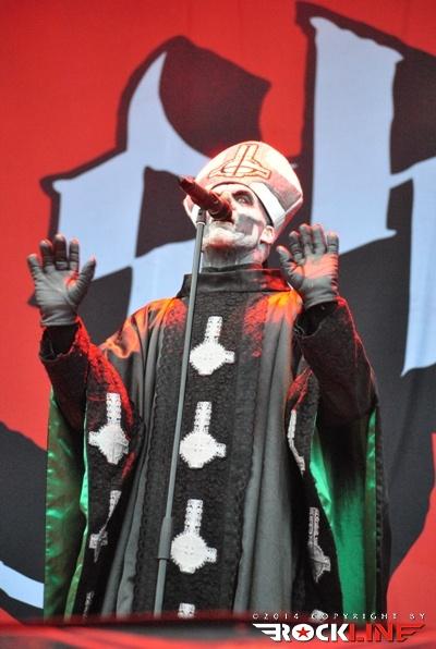 Ob pol osmih so zbrano kongregacijo v orgijo satanističnega heavy metala popeljali švedski zlobneži Ghost. Ob zvokih zlobnega simfoničnega intra je na oder prikorakal vseh pet Nameless Ghoul-ov, za njimi pa še poglavar cerkve Ghost in zvezda odra Papa Emeritus II, ki je takoj požel bučen aplavz in žvižge odobravanja. Ghost so nas za začetek pahnili v leto ena, v leto rojstva Antikrista, Year Zero in Kalemegdan zavili v gosto, zloveščo atmosfero retro heavy metala oz. rocka prepredenega s hudičevskimi, okultnimi temami. Te podkrepi odrska prezenca inštrumentalnih duhov, še bolj pa papeška avdienca Papa Emeritusa II, ki s sladko zavajajočim glasom in teatralnimi kretnjami ukrade prav vso pozornosti. Srbski publiki se je še toliko bolj prikupil zaradi številnih nagovorov v srbščini. Žal je bil vokal sicer precej slabo ozvočen in bogokletna besedila niso prišla tako do izraza kot sicer, se je pa izkazala inštrumentalna peterka, predvsem kitarista z preprostimi, a močnimi rifi ter bobnar, ki je iz minimalnega seta bobnov izzval res ogromno. Ghost so doživeli precej topel odziv, kar je za predskupino Iron Maiden prej izjema kot pravilo, res zanimivo pa je videti, da je Švedom Satana, Luciferja in zlo uspelo tako močno popularizirati, da staro in mlado prepeva verze kot so »Lucifer/We Are Here/For Your Praise/Evil One« in podobne. Ghost so se od Kalemegdana, ki se je počasi že utapljal v temo poslovili s hitom albuma Infestissumam Monstrance Clock. Papa Emeritus II za papeža!