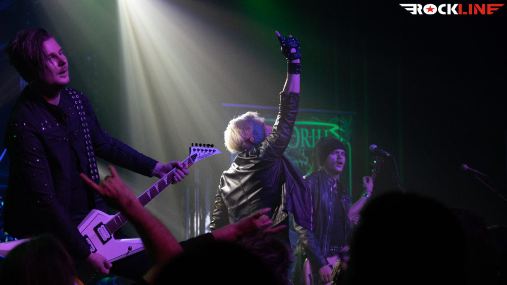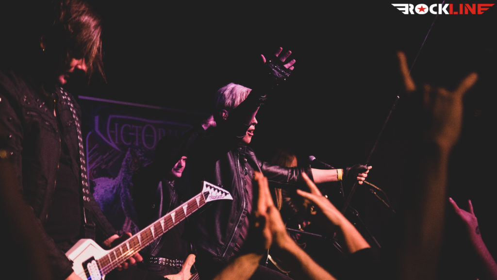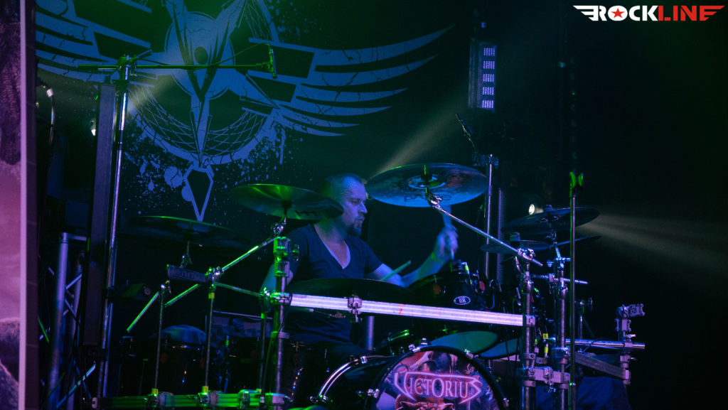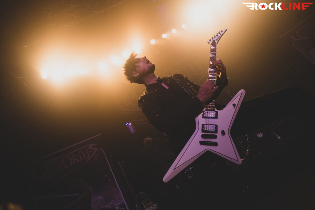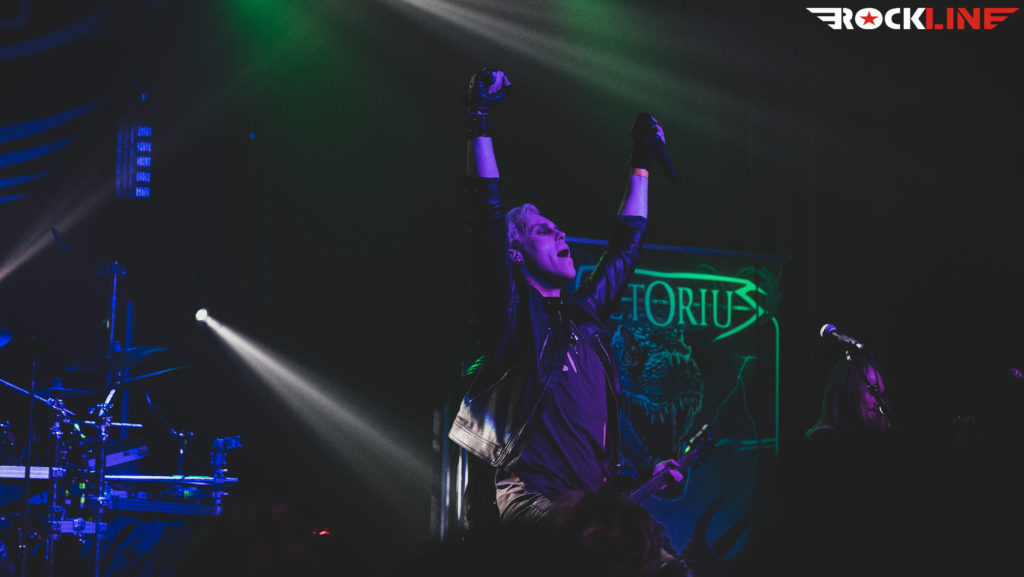 Victorius, nemški povermetalci, ki so tu nastopili 28. 1. 2017 pred Grave Digger (RockLine recenzija koncerta TUKAJ), ali na dan, ko je Slovenija na moč elegantno speljala bronasto kolajno favorizirani Hrvaški na SP v rokometu, so torej odprli večerno rajanje v graškem Explosivu. Prvi se je usidral v fokusu vidnega polja vokalist David Baßin. Zaradi nove poblanžerane pričeske in kratko postriženega lasišča, ob čemer bi človek hipoma pomislil, da je sam samcati Jan Vetter aka Farin Urlaub prestopil iz Die Ärzte branit barve power metala. Tudi kliše vžiga, če si srčen in predan. Verjeti moraš vanj. In Victorius to preprosto morajo verjeti. Čuti se, da veliko igrajo. Da niso več zelenci. Zelo samozavestno obvladujejo oder. Skupina je morala nedavno odkriti, da pri mulariji, ki preživlja dneve ob nažiganju arkadnih iger, vžiga lišp in kič (na meji parodije), nad umetnikovo kreativnostjo. Tako je z EP-jem »Dinosaur Warfare – Legend of the Power Saurus«, izdanim 2018 za Massacre Records, vnesla v svoj izgled nekaj Dragonforce in Gloryhammer grotesknosti (lahko bi vpel še naše Space Unicorn of Fire, da bo mera polna). A ko pomisliš, da v teh sferah občasno kolobarijo tudi (začasno zamrznjeni) Edguy, gre pač za trend, v katerem se po novem preizkušajo tudi Victorius. Bend je pretežno izvajal komade z EP-ja (Dinosaur Warfare, Lazer Tooth Tiger, Legend of the Power Saurus, Razorblade Raptor), poleg pa dodal povsem novi komad, s prihajajočega novega albuma »Space Ninjas from Hell«, ki je bil obilneje založen s klaviaturami in pompom. Komad Super Sonic Samurai. Korekten nastop kvinteta, ki ga ob Baßinu, zapolnjujejo še Dirk Scharsich (kitara), Florian Zack (kitara), Andreas Dockhom (bas kitara) in Frank Koppe (bobni).