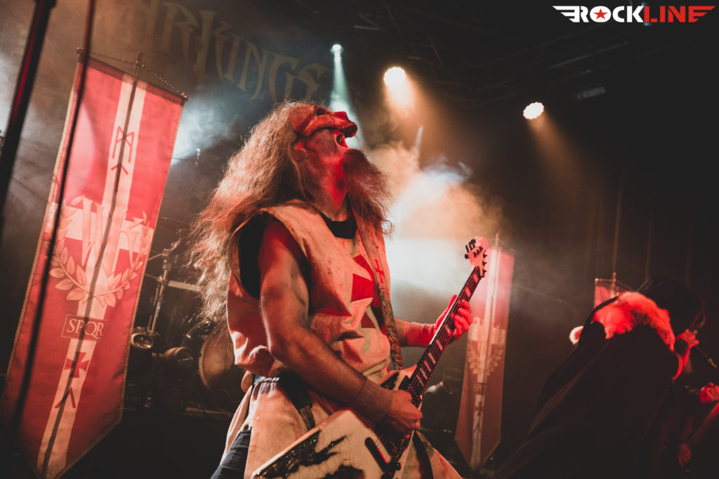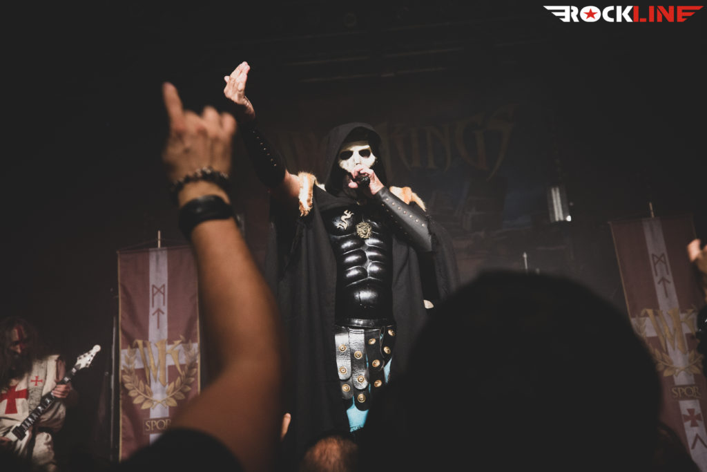O tem, kar smo razpredali v gornjem odstavku pa je naslednja skupina, to je Warkings, že prava perfekcionistka. Kvartet. Vsak član, katerega resničnost je zavita v misterij, je skoraj nujna. Ta zaživi na odru v obliki »alter ega«. Recimo raje, da so si fantje nadeli vloge, ki pobirajo trike iz vse povsod. Od antike do Vikingov, pa vse tja v sfere domišljijskega sveta. Torej. Pevec se imenuje Tribune, basist je Viking, kitarist Crusader, bobnar pa Spartan. Zabava na vidiku. Definitivno. Varovanci založbe Napalm Records so povili prvenec »Reborn« in že naslovnica nagovarja mačistično Manowarsko. Vendar pa zveni bend prej germansko-skandinavsko, ko govorimo o power metalu. Torej k temu dodaš bolj tisti pristop, kot ga imajo Dream Evil ali Firewind,… Bend je nasnetem uvodu vskočil v popadljivo Never Surrender, nalezljivega refrena, pri čemer je presenetil ne le zelo dober zvok, pač pa tudi zelo dobra uigranosti skupine. Nasploh Crusader na kitari, ki je prepričal že z odlično uvodno solažo ter rifažo. Bend so podpirale nasnete klaviature med nastopom, vokalist Tribune pa poseduje čist a dovolj dominantno prodoren vokal, ki spominja na Georga Neuhauserja iz zasedbe Serenity. Heh. To dejansko tudi je Georg. Fantje so se v štiridesetih minutah kar dobro naznojili, predvsem delovali zelo zabavno in duhovito, obenem pa ta moment dobro opravičevali z zelo kakovostno izvedbo materiala. To je nagradila tudi publika, ki jo je bend korenito podžgal. Bolj, ko je šel nastop h koncu, bolj je bila publika notri.