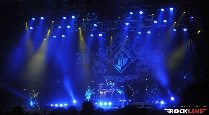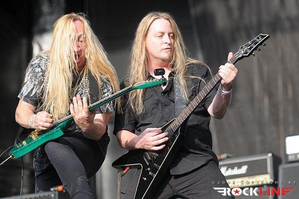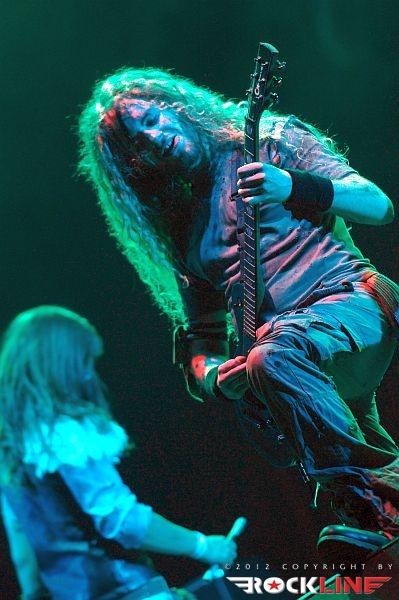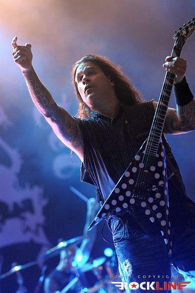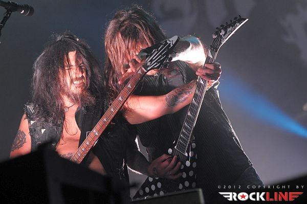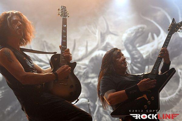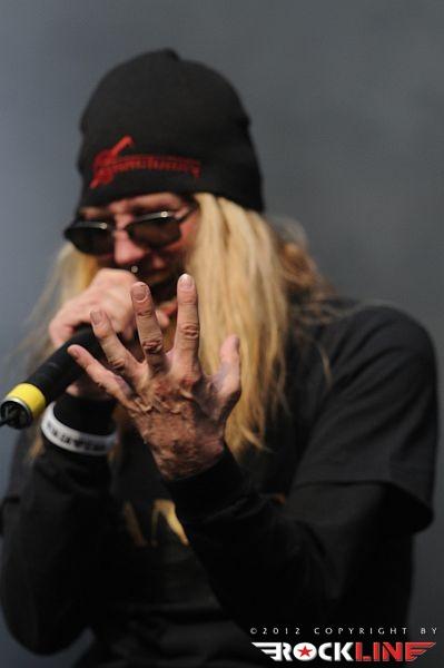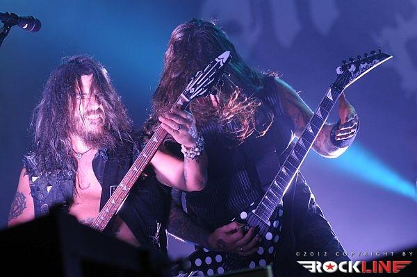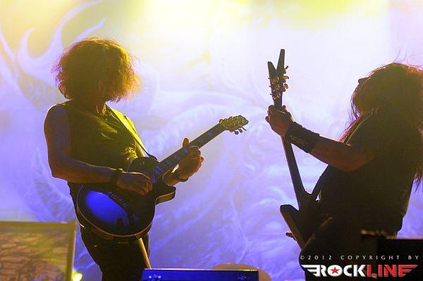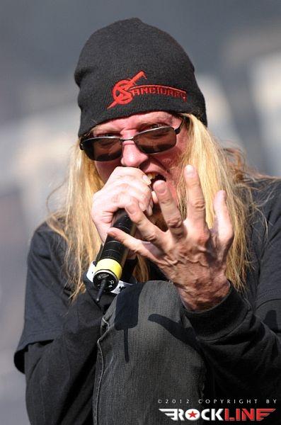 Ponedeljek je bil dan za nastop še enih legendarnih povratnikov na sceno. Če je razpad Nevermore prinesel karkoli dobrega je to ponovna aktivacija kultne seattleske power metal zasedbe Sanctuary v kateri sta pred ustanovitvijo Nevermore igrala basist Jim Sheppard ter vokalist Warrel Dane (in kot live kitarist tik pred razpadom benda tudi Jeff Loomis). Če so na pogorišču Sanctuary v začetku devetdesetih zrasli Nevermore, so se na pogorišču slednjih med žive znova vzdignili Sanctuary. Ti zaradi inteligentnih Warrelovih besedil, intrigantne, skoraj progresivno naravnane glasbe in genialnih kitariskih vragolij dvojca Lenny Rutledge/Sean Blosl, še danes veljajo za biser ameriškega metal poznih osemdesetih, plošči Refuge Denied (1987) in Into the Mirror Black (1989) pa za kulta (prvo je, sicer obupno, saj se je v tistem času poglabljal v drugačne linije kot kitarske, produciral nihče drug kot Dave Mustaine). Mnogo je bilo ugibanj, kako se Sanctuary trenutno obnesejo na odru, mnenja so se po koncertu kresala tudi po forumih in segala vse od popolnega razočaranja do doživljanja glasbene ekstaze. Sam sodim v slednjo skupino in sem mnenja, da so Sanctuary predstavljali ponedeljkov vrhunec in že lep čas nisem doživel koncerta med katerim bi se mi po hrbtu ves čas sprehajali mravljinci. Glavnino dvomov je jasno predstavljal Daneov vokal, vprašljivo je bilo predvsem, če bo zmogel nečloveško visoke falzete iz časov prvega delovanja Sanctuary (pri Nevermore jih je v veliki meri oziroma skoraj povsem izpustil). Dane resda ne vrešči več kot v starih časih, a boljše vokalne predstave ni pokazal že vsaj od turneje z Nevermore za album This Godless Endeavor, uspelo mu je nekaj sapo jemajočih krikov, izmučila ga je šele zaključna klasika Battle Angels. Odlično in suvereno se je obnesel tudi novi član, kitarist Brad Hull (ex-Forced Entry), ki z Rutledgeom že tvori mogočni kitarski duet in resnično me zanima, kaj bosta pokazala na prihajajoči plošči (imenovala naj bi se The Year the Sun Died). Setlista? Nepozabna, polna rušilcev in epov – Soldiers of Steel, Die For My Sins, Jefferson Airplane priredba White Rabbit pa Future Tense, Eden Lies Obscured in The Mirror Black!!! Resnično sem pogrešal le srhljivi poklon Tutankamonu, Veil of Disguise, je pa bend predstavil tudi nov komad I Am Low, ki sicer zveni mnogo preveč nevermorovsko in melanholično za Sanctuary, a počakajmo kaj bo prinesel nov album. Dobrodošli nazaj Sanctuary!