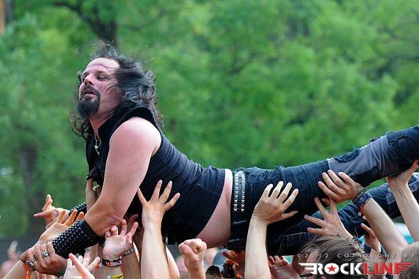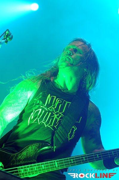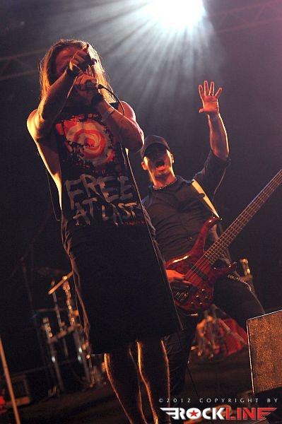 Letos je čas odpreti festival na velikem odru pripadla domači black/death metal zasedbi Morana, takoj za njimi pa z moje strani težko pričakovanim veteranom ameriškega power metala Vicious Rumors. Seveda sem imel to srečo, da sem zaradi službenih obveznosti ujelo točno zadnjih deset sekund zadnjega komada. Grenkobo je potolažilo mrzlo pivo, še bolj pa užitek ušesa namučiti ob nastopu kultnih kanadskih tehničnih death metalcev Gorguts, ki so se v Evropo vrnili po sedemnajstih letih odsotnosti. Gorguts bi morali festivalsko Evropo sicer napasti že lansko leto pa smo ostali polnih mošenj, z uradno razlago, da fantje snemajo novo ploščo (o kateri trenutno še vedno ni ne duha ne sluha). Kakorkoli že, vodja in mastermind benda, kitarist in vokalist Luc Lemay je ob sebi zbral povsem novo zasedbo, ki jo poleg njega sestavljajo basist Colin Marston (Behold… the Arctopus), bobnar John Longstreth (Origin) in kitarist Kevin Hufnagel (Dysrhythmia) in fantje so v slabi uri izvedli fenomenalen tehnični death metal masaker s klasikami bolnega, izprijenega, nezemeljskega death metala albumov The Erosion of Sanity in Obscura. Razpoloženi Lemay je poskrbel za brutalno vokalno predstavo ter s trojico inštrumentalnih čarovnikov/psihopatov nanizal za celo tablo kompleksnih matematičnih enačb prenesenih v glasbeno obliko. Gorguts so odigrali koncert, ki je bil preprosto nuja za vse fene tehničnega death metala in je bil hkrati orgazem vesoljskih razsežnosti in hkrati kot bi ti v levo uho tlačili Linearno algebro v desno pa Teorijo strun.
