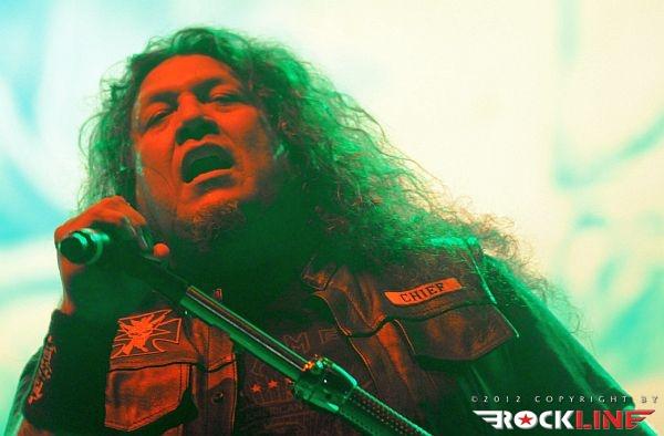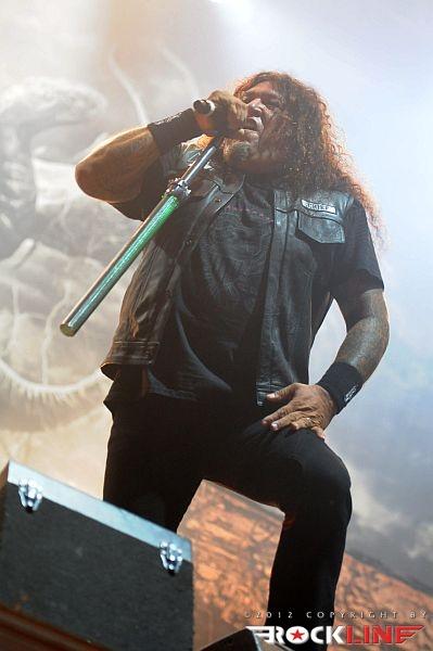 Nastop legendarnih britanskih pionirjev grindcora Napalm Death sem spričo njihovih pogostih obiskov naših odrov zamenjal za mrzlo pivo in obisk sotočja, pred glavni oder pa sem se znova zdrenjal nekaj čez deveto in z velikim navdušenjem pozdravil thrash velikane Testament, ki so z novo ploščo Dark Roots of the Earth dokazali, da jim med velikimi trenutno ni para. V stilu največjih so Testament na čelu s poglavarjem Chuckom Billyjem zakorakali na oder Metal Campa in nas povabili k vstaji z rušilcem nove plošče Rise Up, ki je naravnost narejen za žive situacije. Žal je popoln užitek pokvaril obupno slab zvok, ki je povsem pojedel Billyjev vokal in večino kitar dvojca Peterson/Skolnick (na sumu imam, da se je na zvočnik usedel Gene Hoglan), a se je k sreči do tretjega komada po vrsti, klasične Testament thrash macole The Preacher, vsaj za silo popravil. Nato pa šus adrenalinskega thrash metala vse do konca, pod odrom pa ni bilo videti konca (ali začetka) čupanja in neskončnega moshanja. Testament so v (prekratkem) času, ki so ga imeli na razpolago sestavili setlisto na kateri je svoje mesto dobil predstavnik s skoraj vsake plošče (žal je zmanjkalo časa za kakšno presenečenje s krivično spregledanih Souls of Black, The Ritual, Low in Demonic). Večnim klasikam, s krvavimi črkami zapisanimi v zgodovino – The New Order, The Preacher, Into the Pit, Over the Wall – so se zlahka ob bok postavile nove mojstrovine, ki bodo brez dvoma postale del železnega repertoarja skupina. Native Blood, True American Hate in Dark Roots of Earth imajo prav vse značilnosti klasičnih Testament, pomešanih z agresivnejšimi stvaritvami devetdesetih – spevne in nalezljive refrene, fenomenalno kitarsko delo briljantnega dvojca Eric Peterson in Alex Skolnick, povrh vsega pa še bobnanje človeške atomske ure Genea Hoglana (človeku so po Černobilu verjetno zrasli dodatni pari nog in rok). A Testament ne bi bili pravi brez Chucka Billyja, ki je tudi tokrat dokazal, da je eden najbolj markantnih thrash metal vokalistov! Človek, ki je prebolel raka rjuje kot lev! Pa naj gre za agresivne thrash linije, čisto petje ali čisto death metalsko kruljenje v The Gathering bombah D.N.R. in 3 Days in Darkness. Vrhunski nastop so kljub slabšemu zvoku Testament v kraljevskemu slogu zaključi s Formation of Damnation.