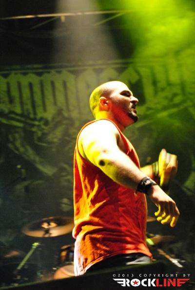 Overkill so pripeljali pred oder posebno gardo oboževalcev. Nekoliko zrelejšo. Manj naivno. V skladu z njihovim thrash metal EMŠOm. Z izjemno prekaljenostjo je Bobby Blitz pokoril občinstvo in ga vodil kot v hipnozi. To je ubogljivo izpolnjevalo vse njegove želje. Bobby je izjemen frontman. Karizme mu ne manjka in le to zna s pridom izkoriščati. Neverjeten vodja in mož, ki zna v pravem trenutku izbirati prave besede. Seveda je za njim stala zvesta mašinerija instrumentalnega dela skupine, ki je pristopila na festivalskemu nastopu, kot bi bila v transu. Z izdatno mero fanatizma, pa čeprav gre pri skupini s takšno kilometrino za »šolski dril«, vseeno veji v vsakem riffu in vsakem gibu tudi v letu 2013 strast, radost in velik užitek nastopanja! Overkill so izjemno prepričljiv odrski izvajalec, ki ne more ustreliti mimo. Razbeljene glave pred odrom in krepak katalog studijskih izdaj, ki kličejo po zlatih časih, ko je bil metal še mlad, pristen, neukročen ter uporniški, sta garantirala novo nepozabno avanturo s skupino, ki nepovratno brca in grize le enosmerno in za seboj ne pušča preživelih. Že kombinacija otvoritve z novo Come And Get It z aktualnega studijskega albuma »The Electric Age« (2012) in takoj za njo Rotten to the Core – klasiko s prvenca »Feel the Fire« (1985), se je odvrtela v takšni režiji, Overkill pa so svoj smrtonosni pohod skozi uro nastopa le še stopnjevali proti repu set liste s serijo zahtevanih in pričakovanih stalnic železnega repertoarja. Nastop torej, ki je bil izpeljan po vzoru najboljših svetovnih odrskih izvajalcev sfere metala!
