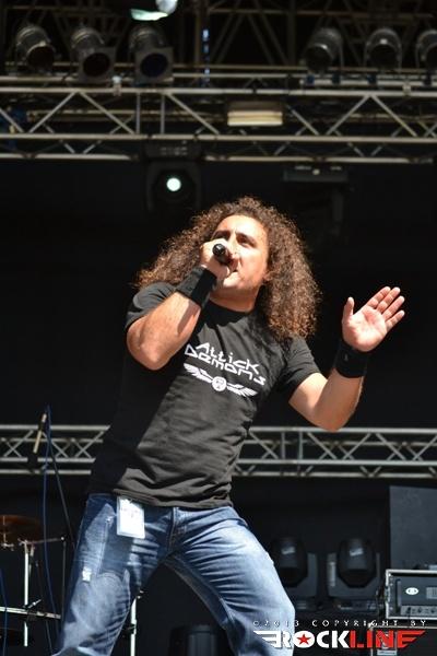 Sledil je sprint (ki jih je bilo zaradi nekaj nerodnih prekrivanj letos več kot prej, a to tudi na rovaš odličnega nabora nastopajočih) na glavni oder, da smo ujeli portugalske heavy metalce Attick Demons, ki so premierno stopili na slovenski oder. Portugalci so na glavni oder stopili v največji vročini, a so kljub temu z odra zmetali dozo pozitivne energije, predvsem zahvaljujoč hitropoteznemu in dobro razpoloženemu vokalistu Arturju, ki ga je bil oder poln od prve note dalje, manjkalo pa ni niti glamerskih gibov a la skakanje z »drum riserja« z razkrečenimi nogami. Attick Demons so leta 2011 izdali svoj studijski prvenec Atlantis, na katerem so uspešno združili heavy metal, na katerega so močno vplivali Iron Maiden in power metal, ki je blizu ameriškim zasedbam tipa Pharaoh in Cage, v dobre pol ure pa je šesterica odigrala lep delež albuma. Tako je, Attick Demons je šest članska zasedba s tremi kitaristi, ki (hvale vredno) ves čas ne igrajo zgolj istih kitarskih linij, temveč uspejo presenetiti z nekaj prefinjenimi fintami. Žal je fantom ponagajala tretja kitara in slabši zvok, a je kljub temu na površje vrel izreden Arturjev vokal, ki je večkrat spomnil na veličino Dickinsonovega vokala.