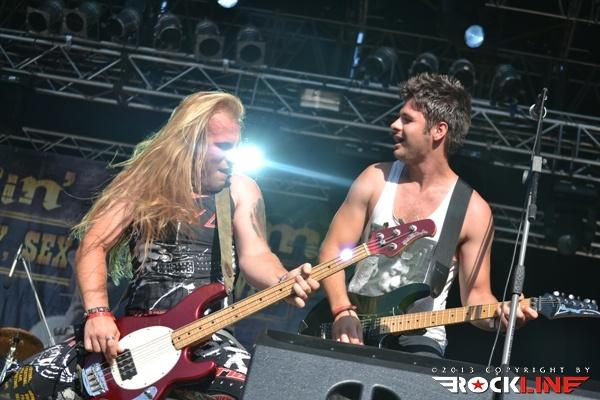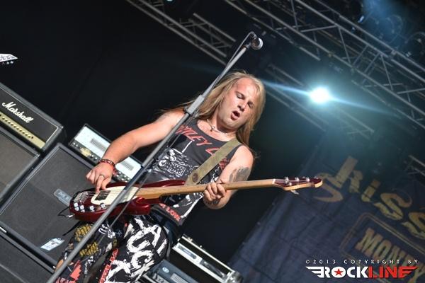 Kissin’ Dynamite je kvintet potentnih žrebcev, ki ga RockLine spremlja že od leta 2009, ko se je predstavil prvikrat na velikem Bang Your Head !!! festivalu. Mimogrede, takrat so danes »čudežno vsem-všečni« piratski grmičkarji Alestorm, nastopili v dopoldanskem času festivala tik pred Kissin’ Dynamite. Takrat so se Kissin’ Dynamite predstavili kot tipični revitalisti heavy metala stare nemške šole. Tako po slogu aranžiranja skladb, kot tudi po samem zunanjem videzu. Gre za ekipo, doma iz Balingenu bližnjega Reutlingena, ki je po EMŠO izzaznicah komaj presegla starostno dobo 20 let. Johannes Braun (vokal), njegov brat Ande Braun (kitara), Jim Müller (kitara), Steffen Haile (bas kitara) in Andi Schnitzer (bobni), so po tej plati resnični fenomen. Zasedba, ki je leta 2008 spremenila ime iz Blues Kids v Kissin’ Dynamite (po eni izmed AC/DC skladb), se je to pot premierno predstavila ne le v sklopu Metaldays festivala, pač pa kar v Sloveniji s svojim tretjim studijskim izdelkom »Money, Sex And Power« (2012), s katerim so s prej opisanega žanrskega polja konkretno prestopili na polje sleaze-a in tako nekako nadeli metalu, ki ga igrajo, tudi ta element, ki dosega, zlasti zahvaljujoč novemu skandinavskemu valu skupin v današnjem času, znova veliko priljubljenost v Evropi. Kissin’ Dynmaite so se tako načičkali v sleaze rock zasedbo, ponudili sredi strupene zgodnje popoldanske pripeke izjemen dinamičen nastop, v katerem je za dobro počutje vseskozi skrbel »topless« vokalist Johannes Braun. Ta je postregel z nekaj uho parajočimi vriski najviše uperjenih leg. S Kissin’ Dynamite je Metaldays pripeljal v Tolminske loge izvajalca, ki se žanrsko in karakterno konkretno odklanja od osnovne metalske misije, kakršno je diktiral nekdanji Metal Camp. Izredna gesta organizatorja in upajmo, da bodo v prihodnje po Kissin’ Dynamite sledile tudi druge obče vroče sleaze rock ali glam metal revival zasedbe, če so že denimo kakšni rock ‘n’ roll umazanci Airbourne predragi.